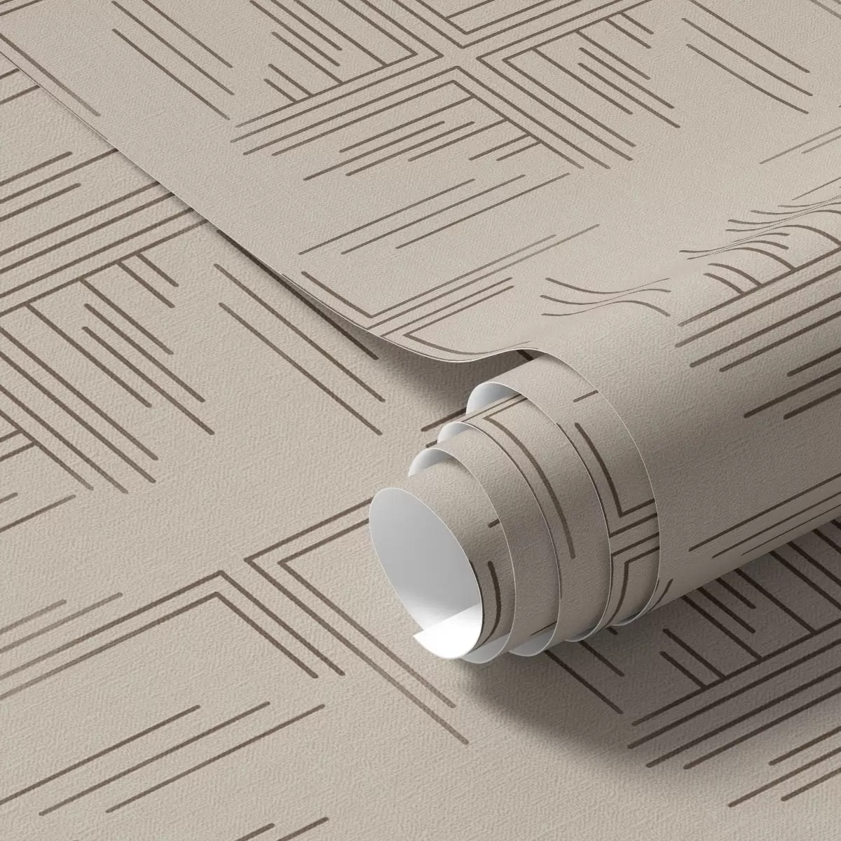 Papel de parede Blocos de canto em cacau com detalhes em linha dispersa, bege Nr. a00912