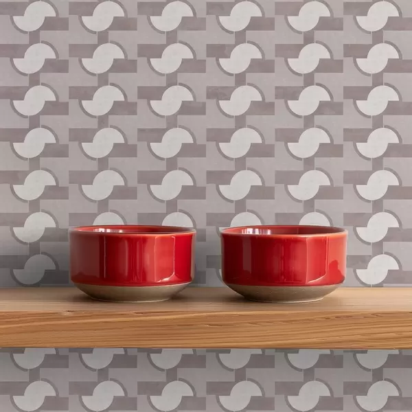 Papel de parede Ladrilhos modulares malva com semicírculos interligados Nr. a00915