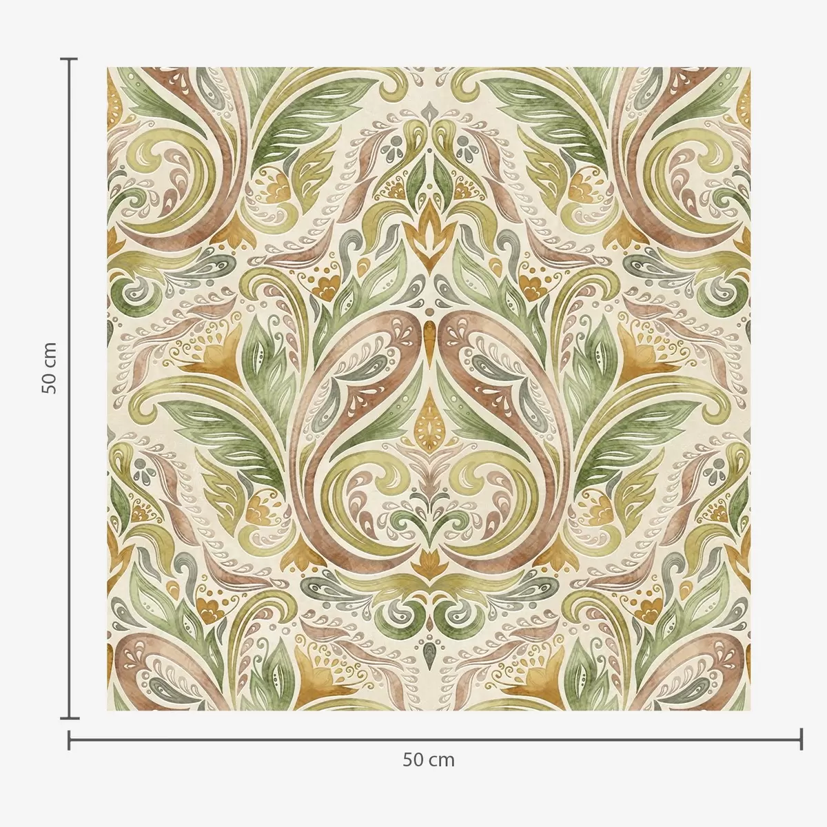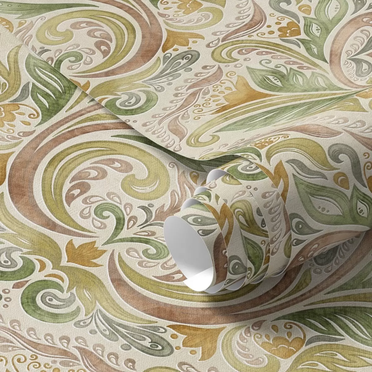 Papel de parede Espirais folhosas em tons de verde e ocre quente, pintadas em aquarela Nr. a00927