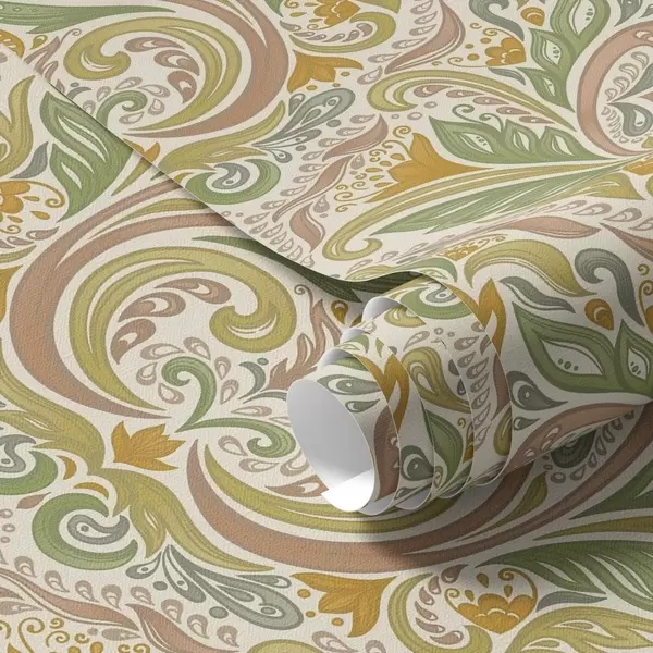 Papel de parede Espirais ornamentais folhosas em tons de verde e terracota Nr. a00927v1