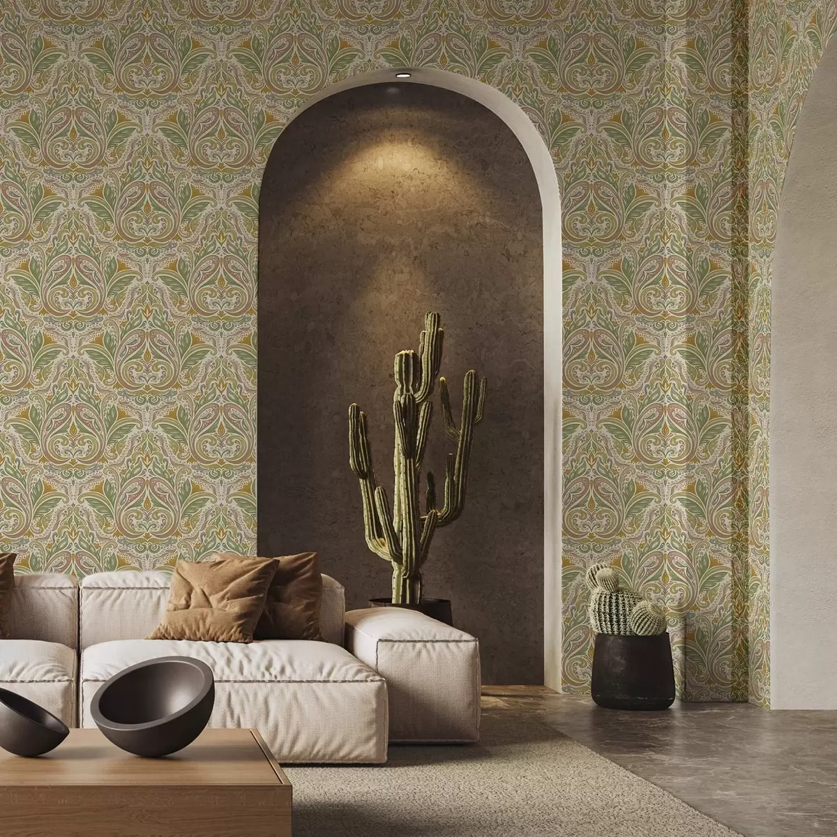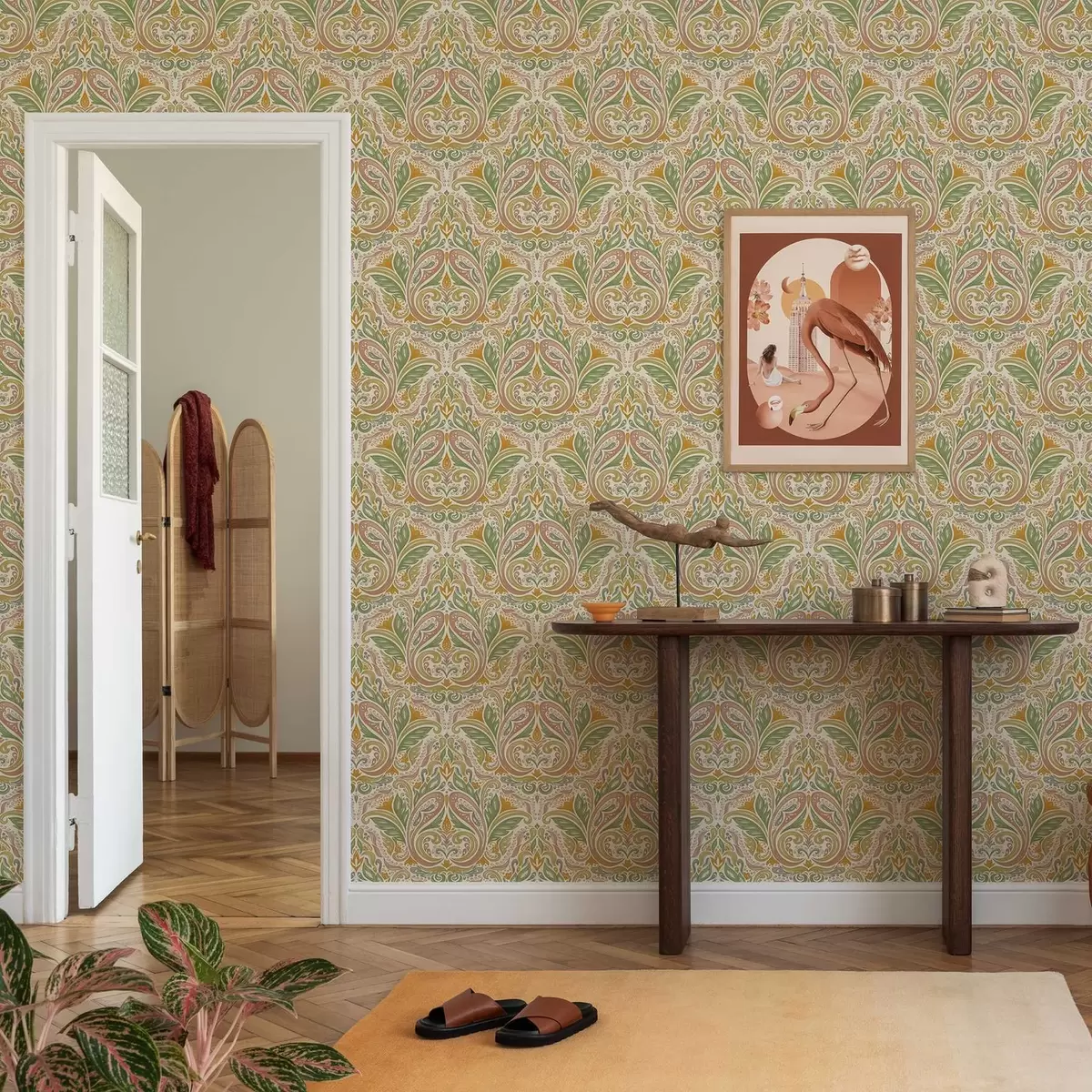 Papel de parede Espirais ornamentais folhosas em tons de verde e terracota Nr. a00927v1