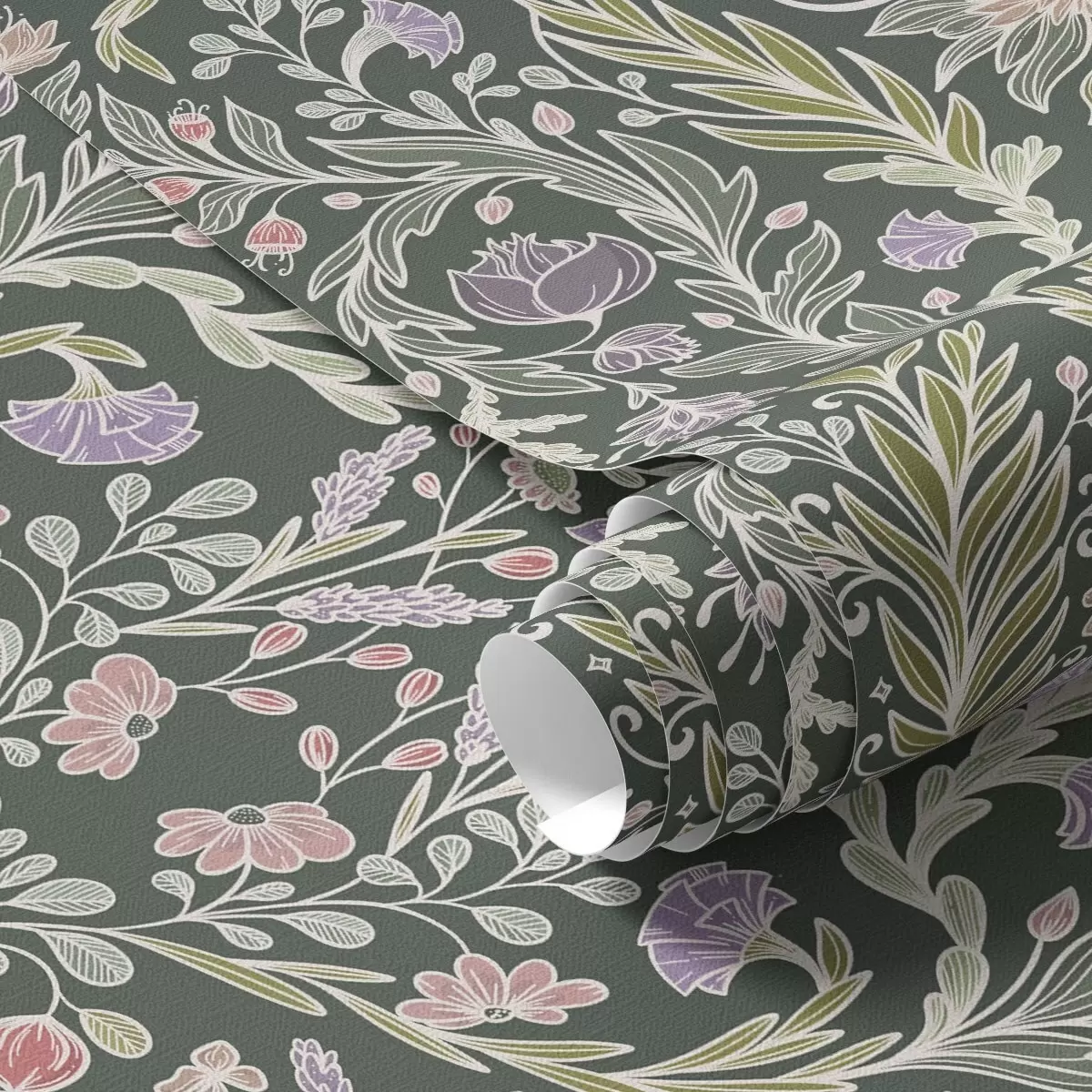 Papel de parede Ornamento floral simétrico sobre fundo verde escuro Nr. a00928