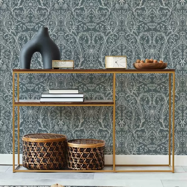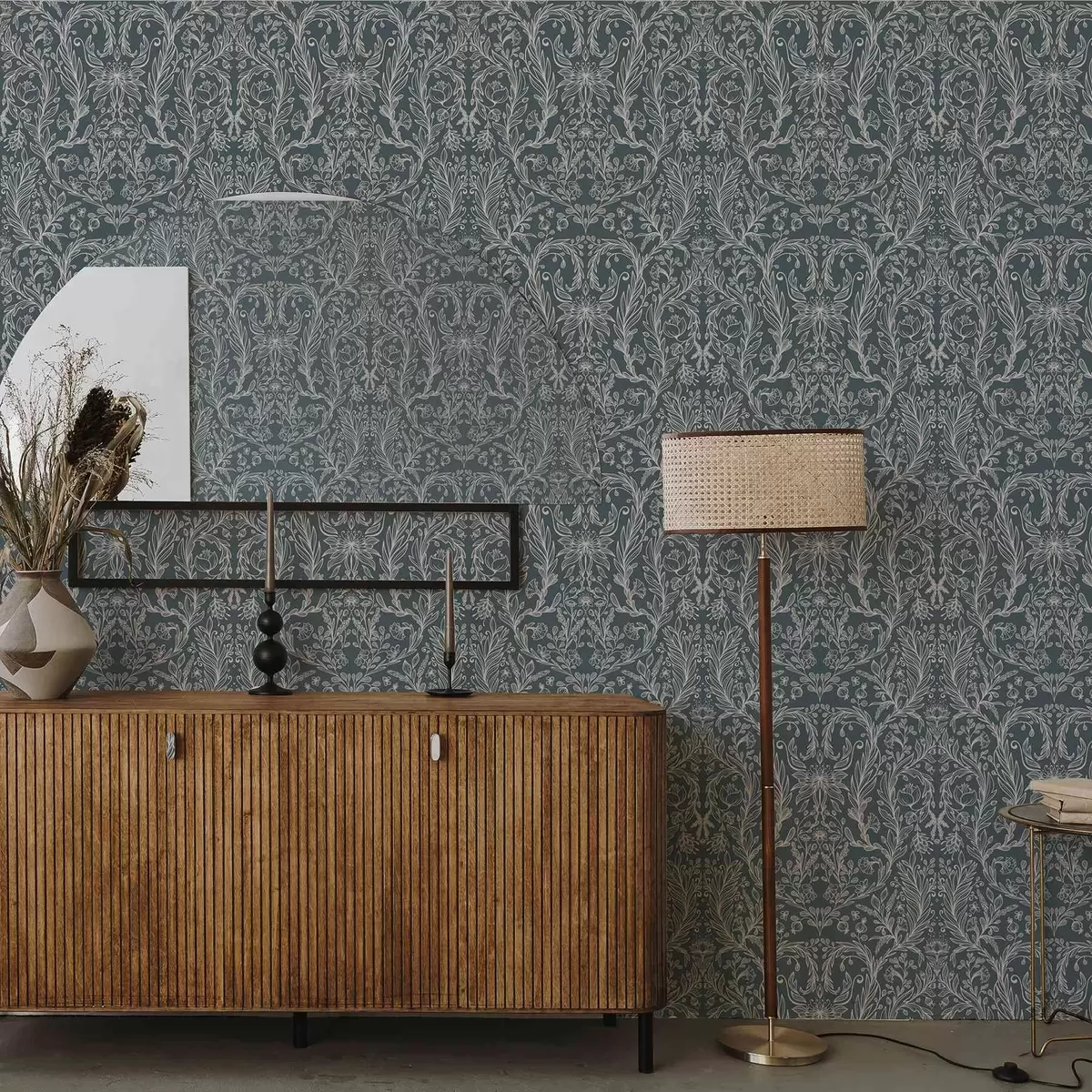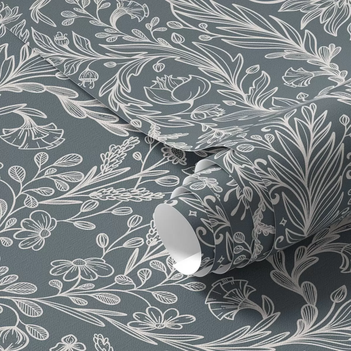 Papel de parede Ornamento floral linear sobre fundo cinza-azulado Nr. a00929v1