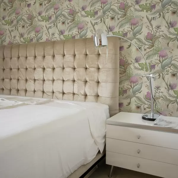 Papel de parede Botões lilás e folhagem suave sobre fundo creme Nr. a00930v2