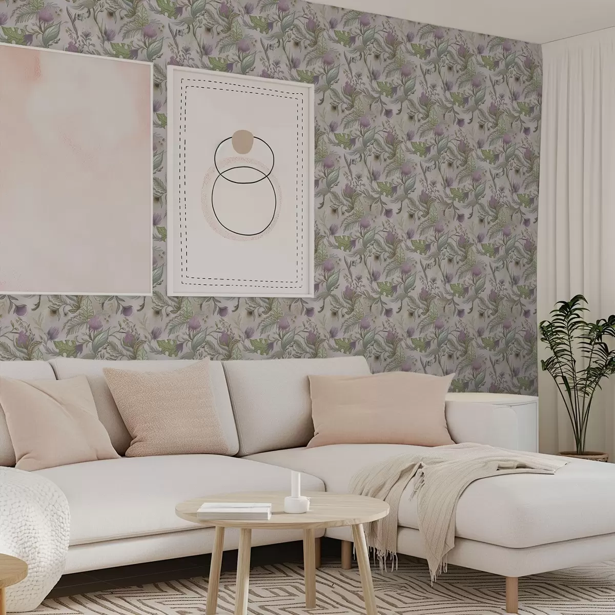 Papel de parede Flores silvestres lilás e folhas sobre um fundo em pó Nr. a00930v3