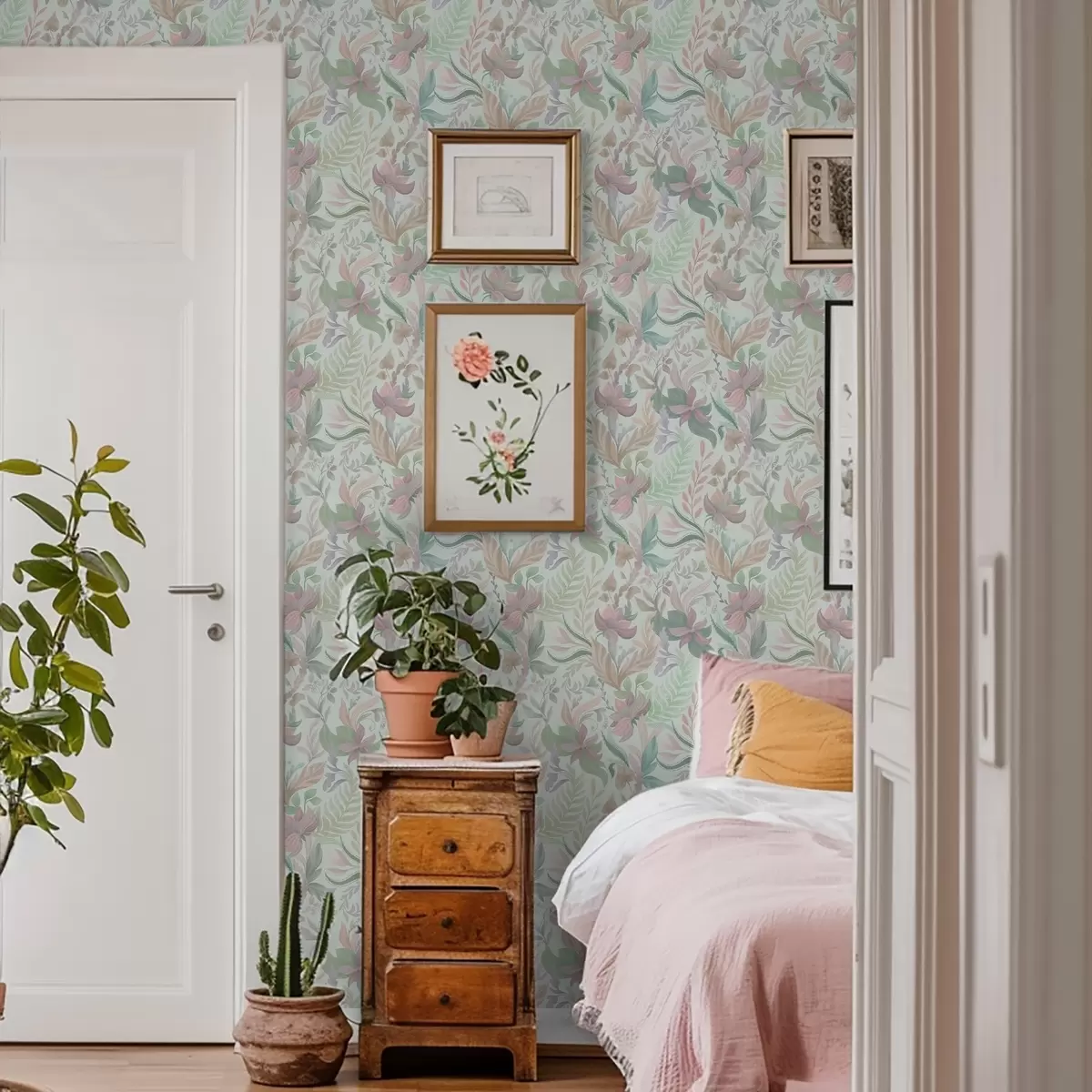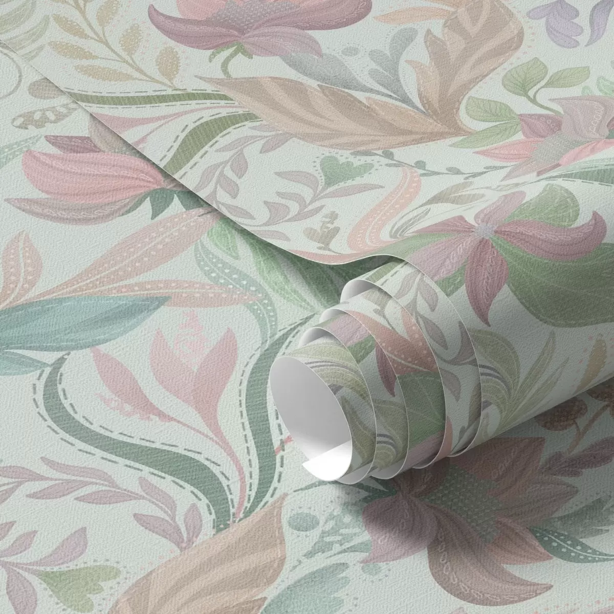 Papel de parede Padrões florais em tons pastel sobre um fundo suave em cor menta Nr. a00931v1