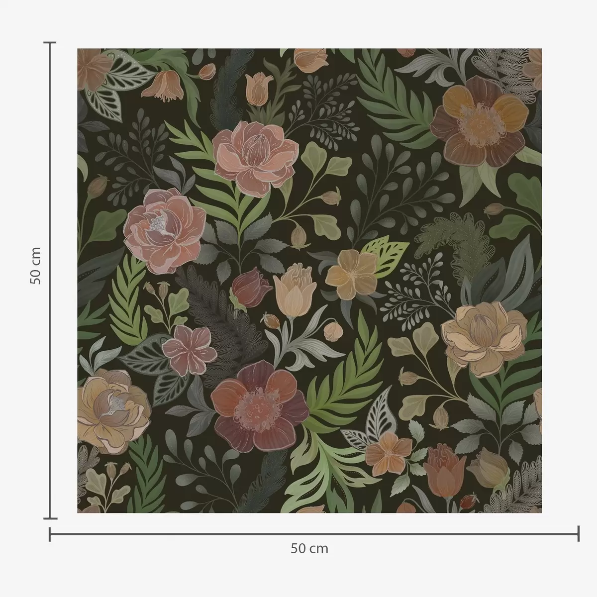 Papel de parede Flores exuberantes e vegetação em um fundo escuro profundo Nr. a00932