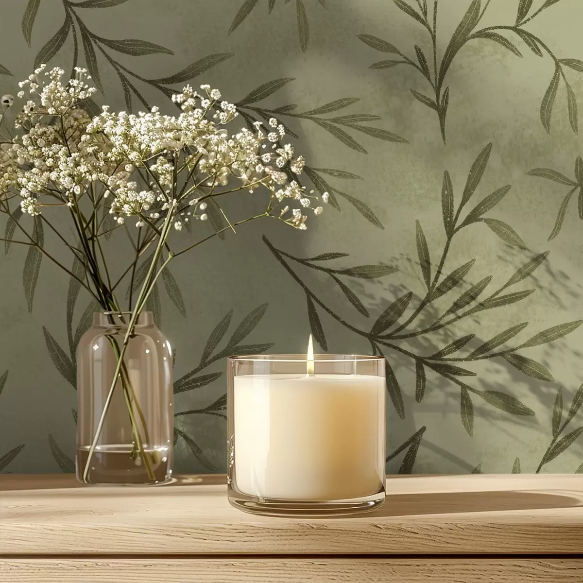 Papel de parede Raminhos de oliveira sobre um fundo texturado em tons suaves de amarelo-esverdeado Nr. a00936