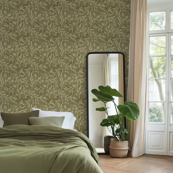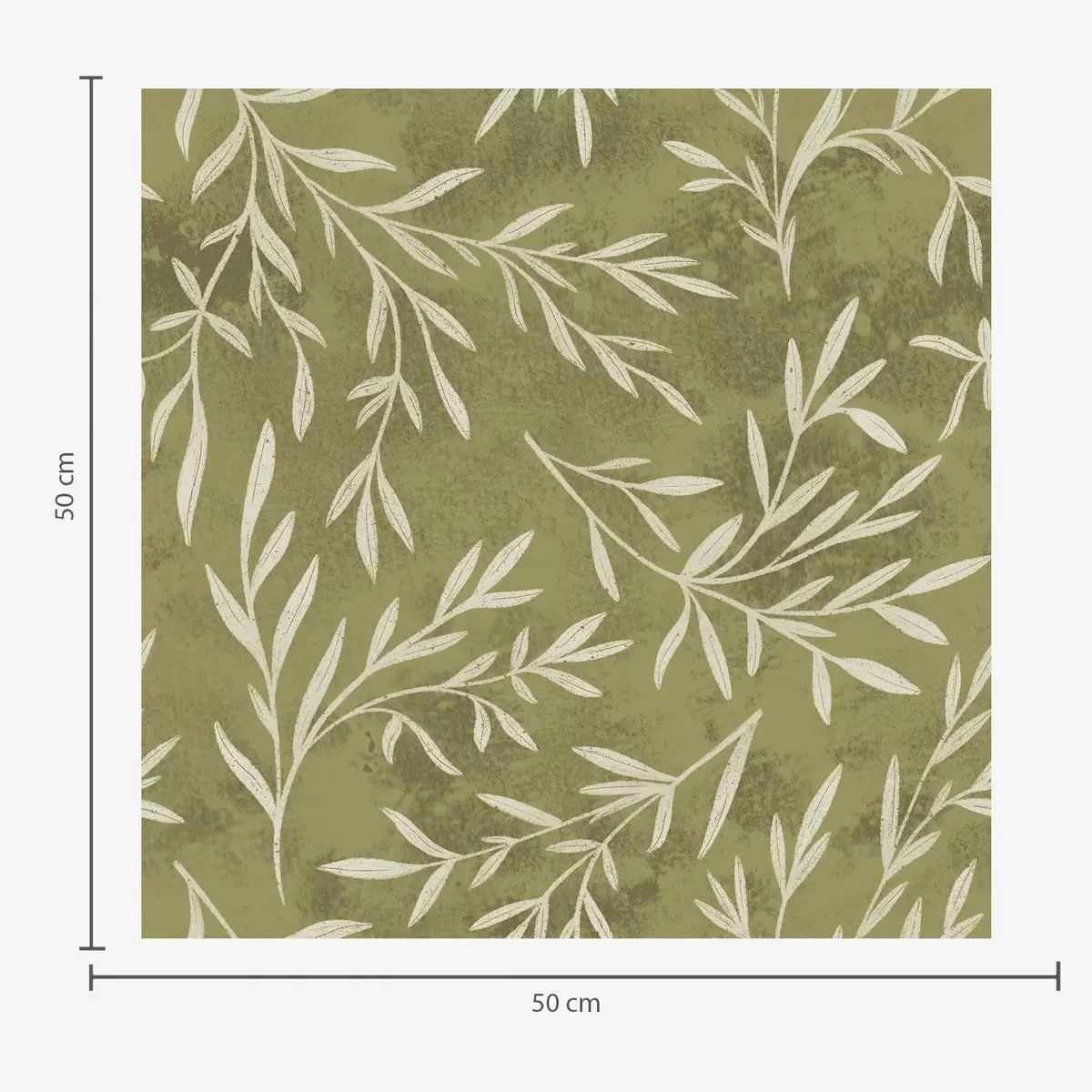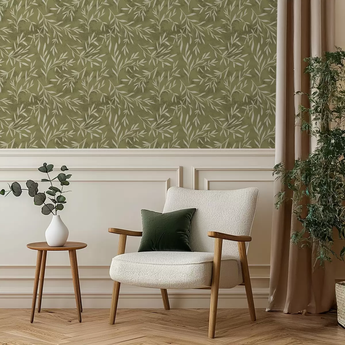 Papel de parede Raminhos brancos cremosos sobre um fundo texturado em tom azeitona quente Nr. a00936v1