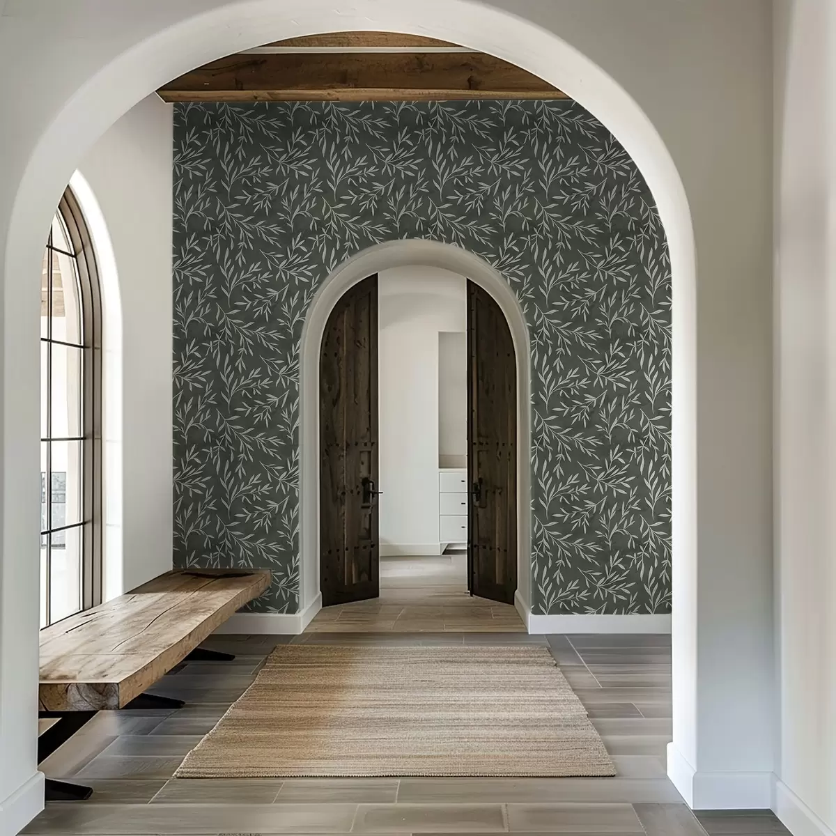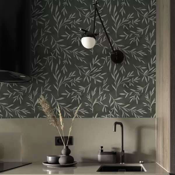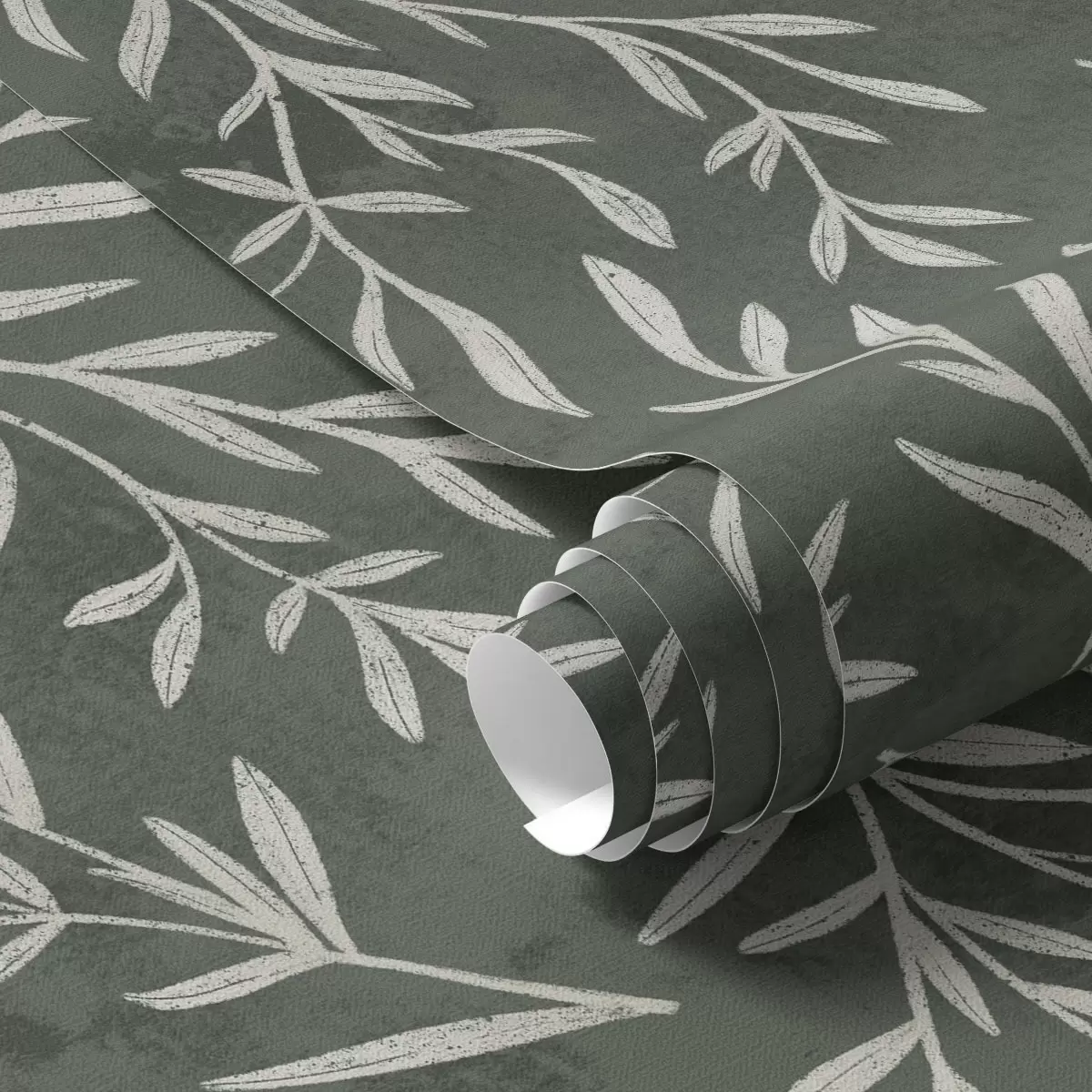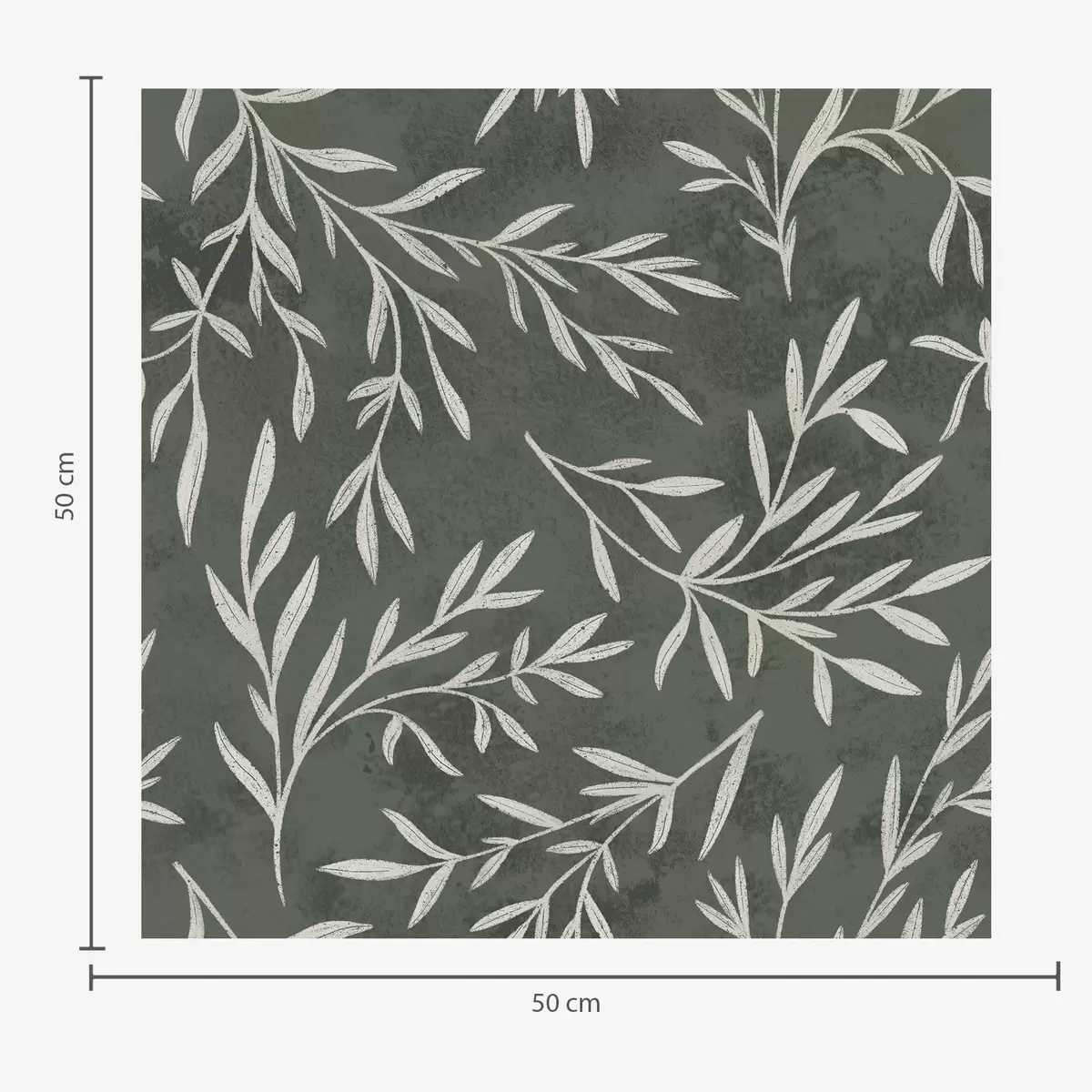 Papel de parede Ramos brancos esboçados sobre um fundo verde-salva profundo Nr. a00936v2