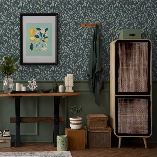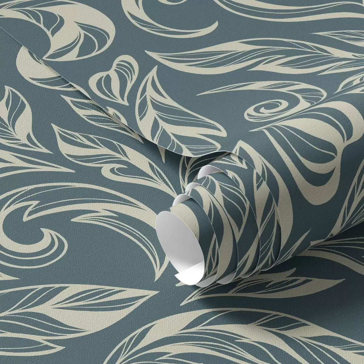 Papel de parede Padrão folhoso de linhas claras sobre um fundo azul-acinzentado Nr. a00940