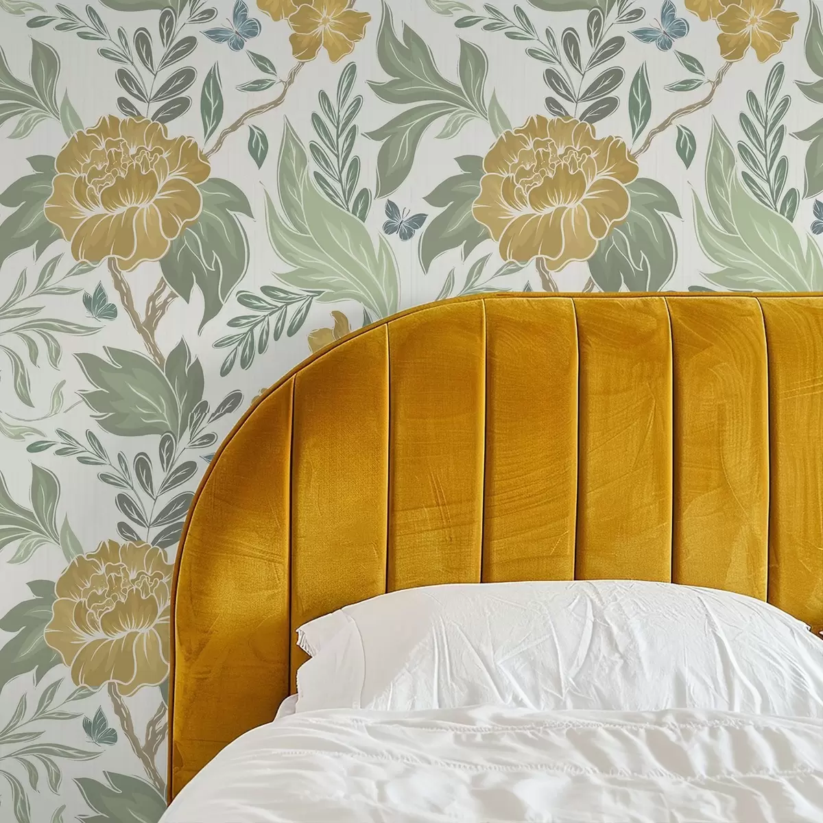 Papel de parede Grandes peônias amarelas e folhagem sobre um fundo claro Nr. a00941