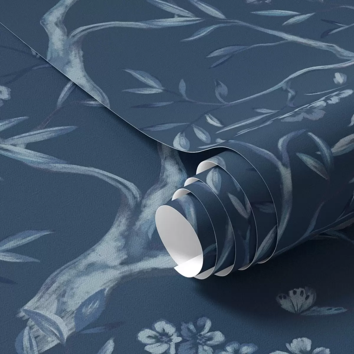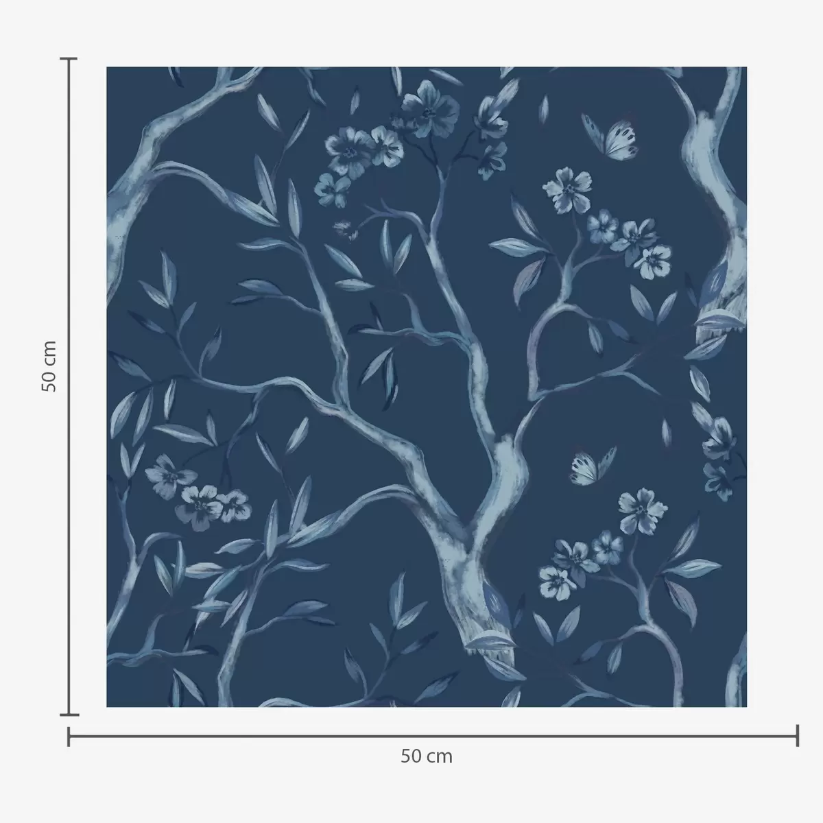 Papel de parede Galhos com flores azuis e borboletas sobre um fundo escuro Nr. a00951v1