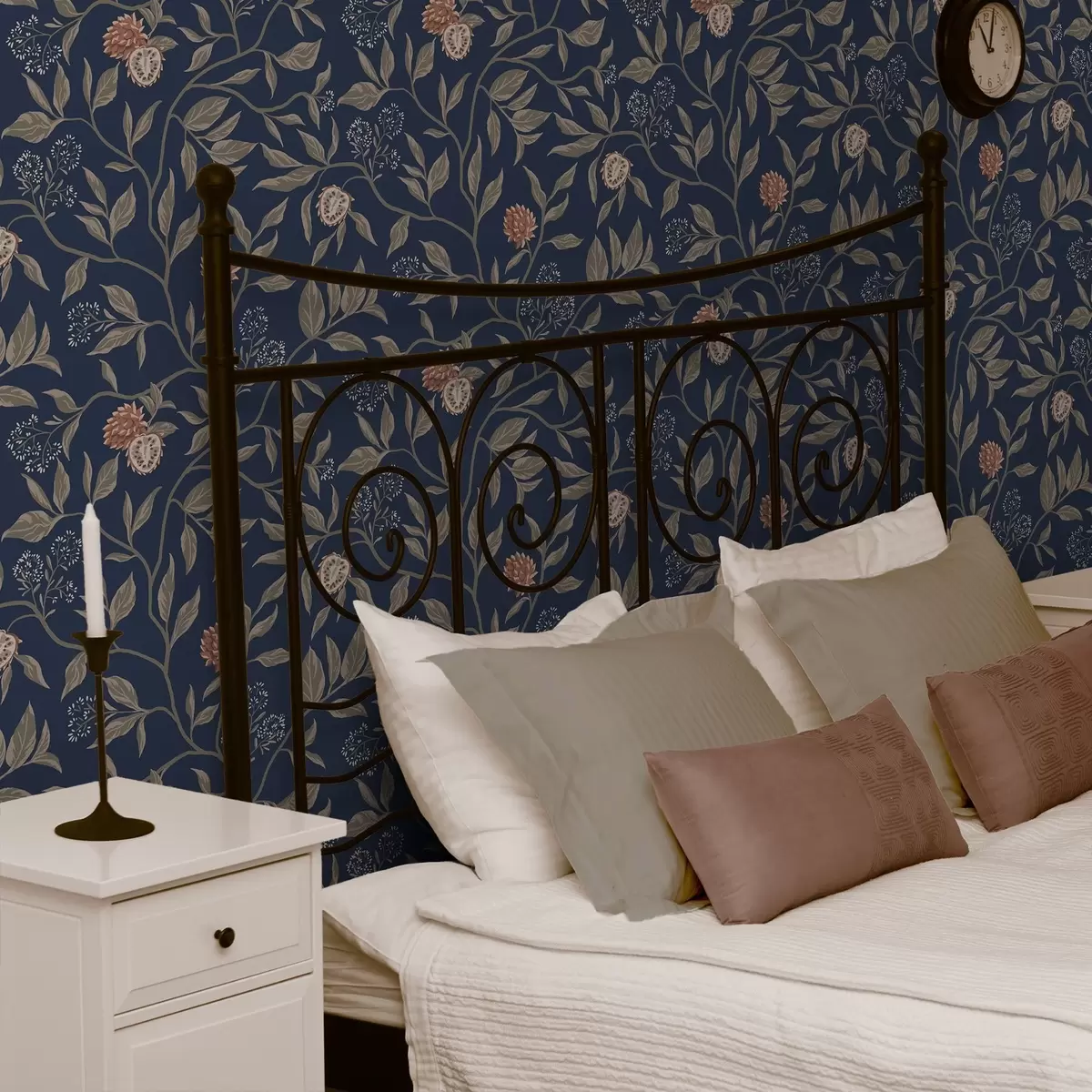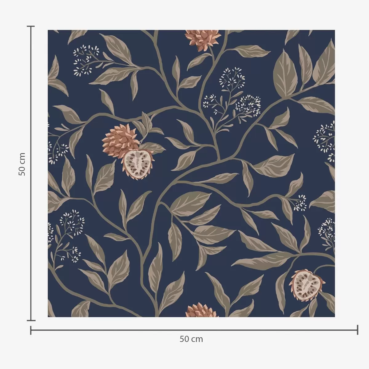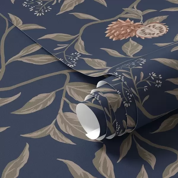 Papel de parede Jardim azul com ramos, frutos e pequenas flores Nr. a00959
