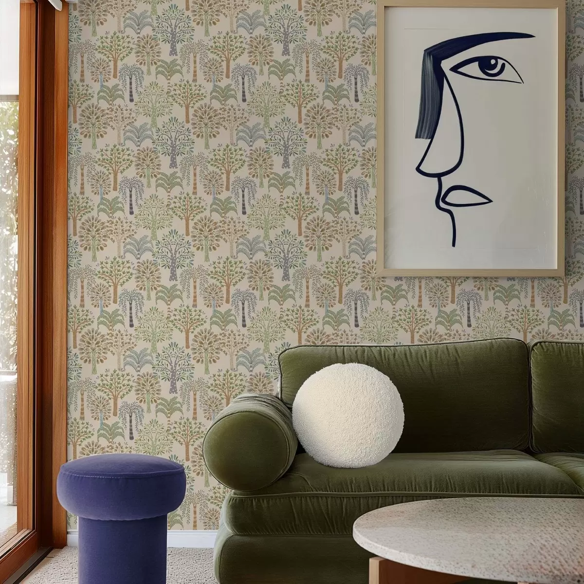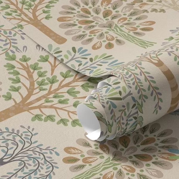 Papel de parede Árvores decorativas numa paleta suave e natural Nr. a00960