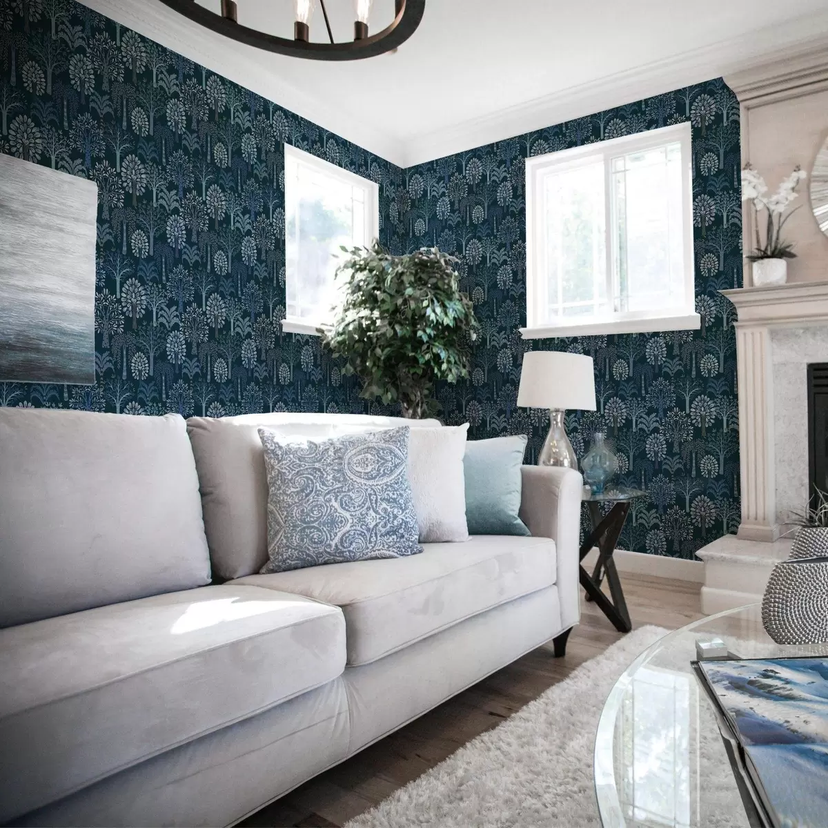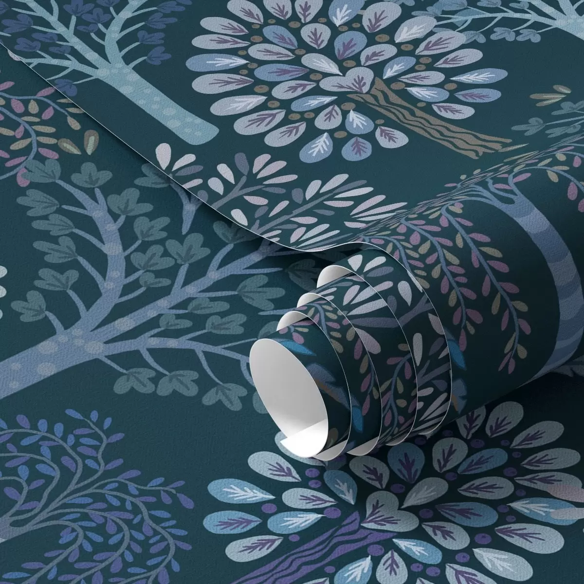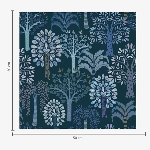 Papel de parede Floresta noturna com árvores decorativas em tons de azul Nr. a00960v2