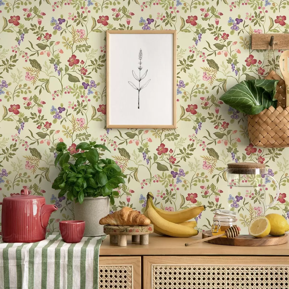 Papel de parede Jardim florido com bagas, uvas e flores silvestres Nr. a00961