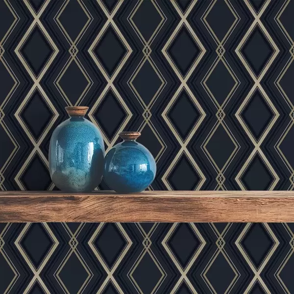 Papel de parede Grelha de diamantes azul escuro com linhas finas claras Nr. a00975