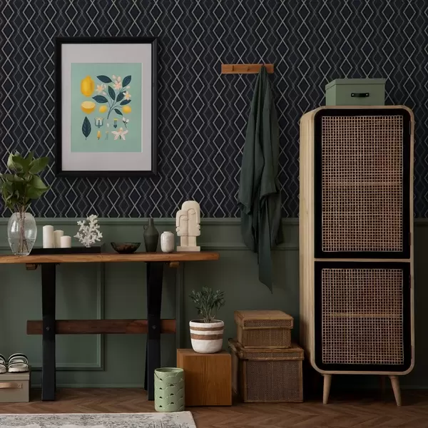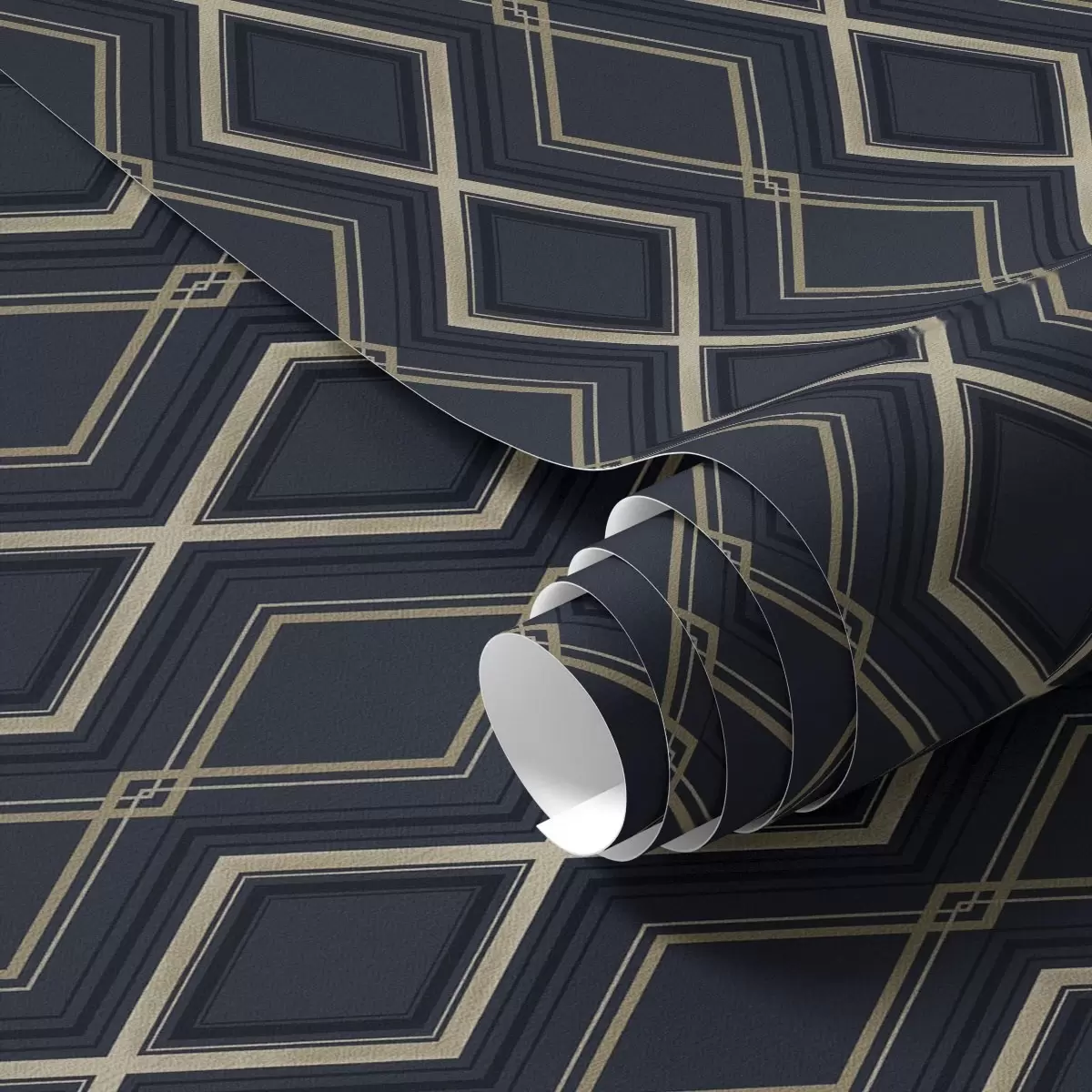 Papel de parede Grelha de diamantes azul escuro com linhas finas claras Nr. a00975