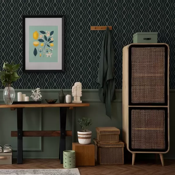 Papel de parede Fundo azul-petróleo escuro com uma grelha de losangos repetitiva Nr. a00975v1