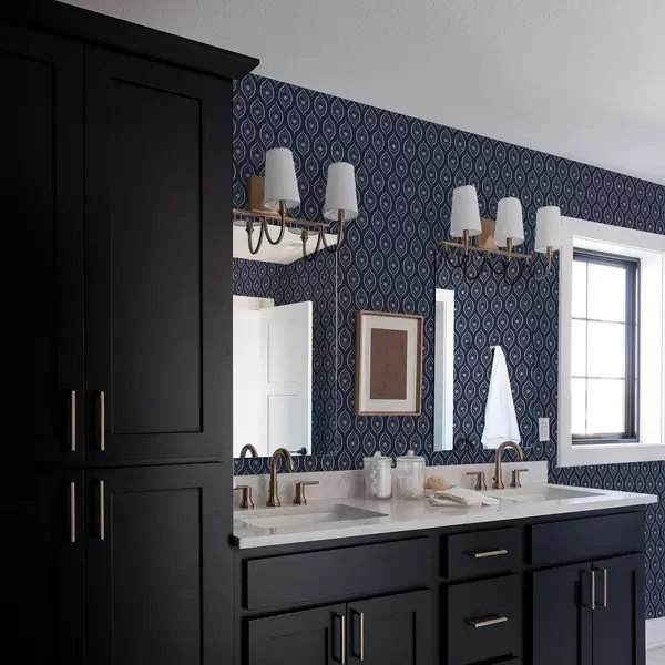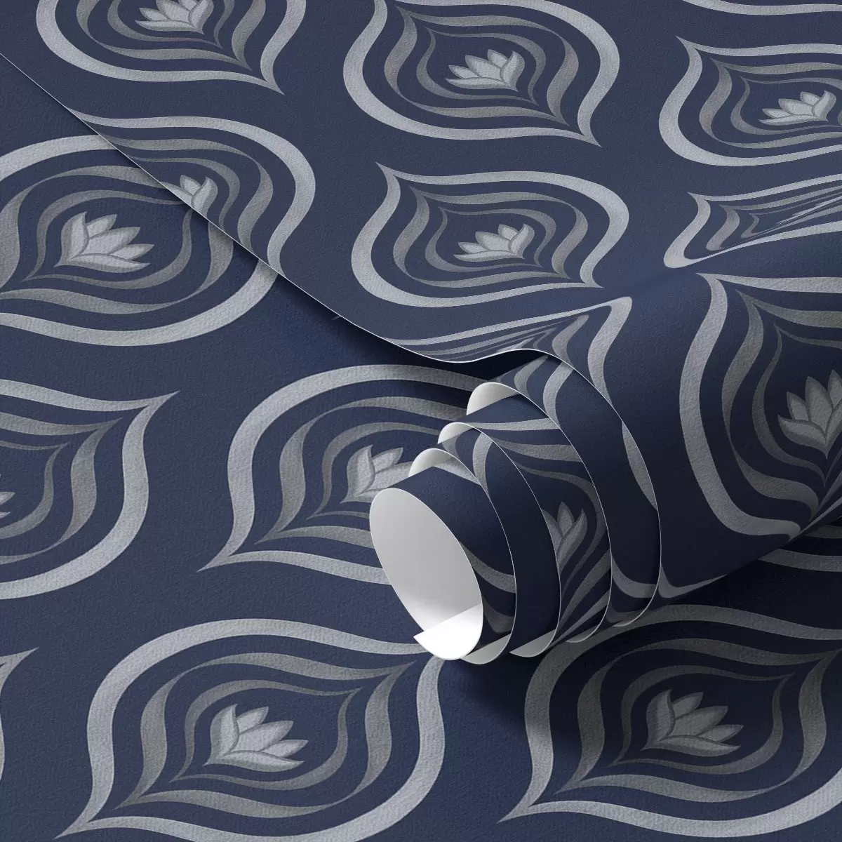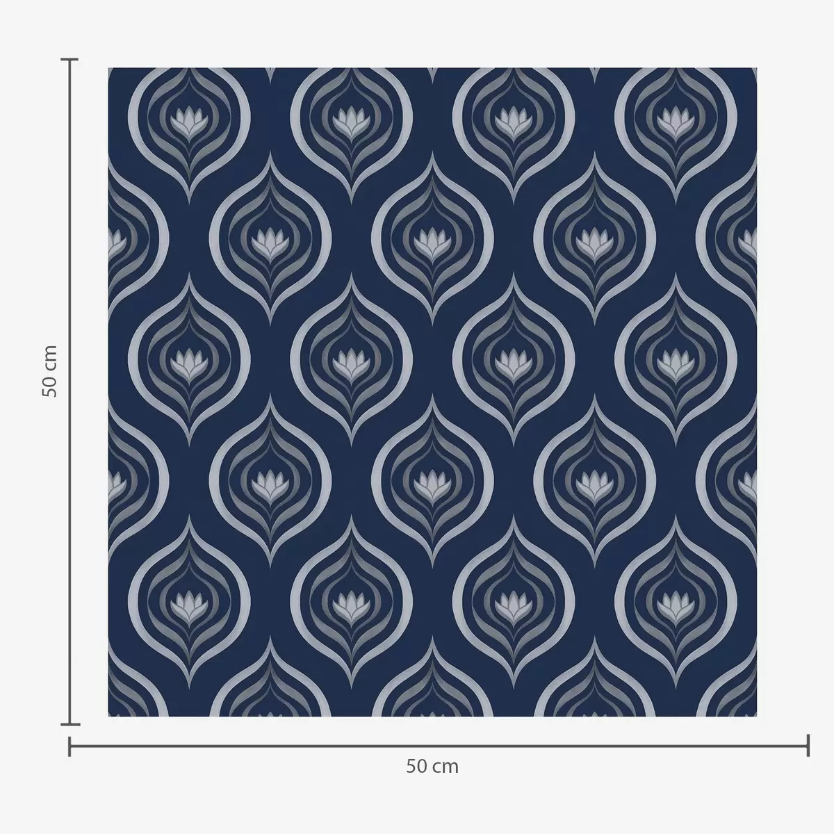 Papel de parede Motivos contrastantes de gotículas com uma flor sobre um fundo azul-marinho escuro Nr. a00977v1