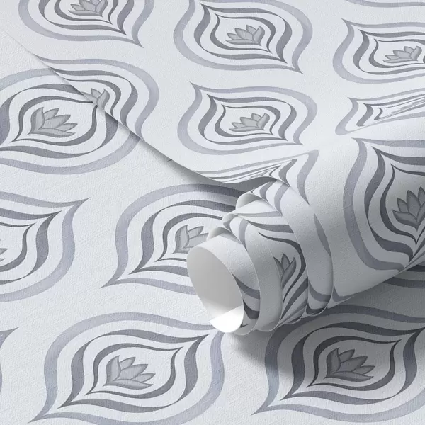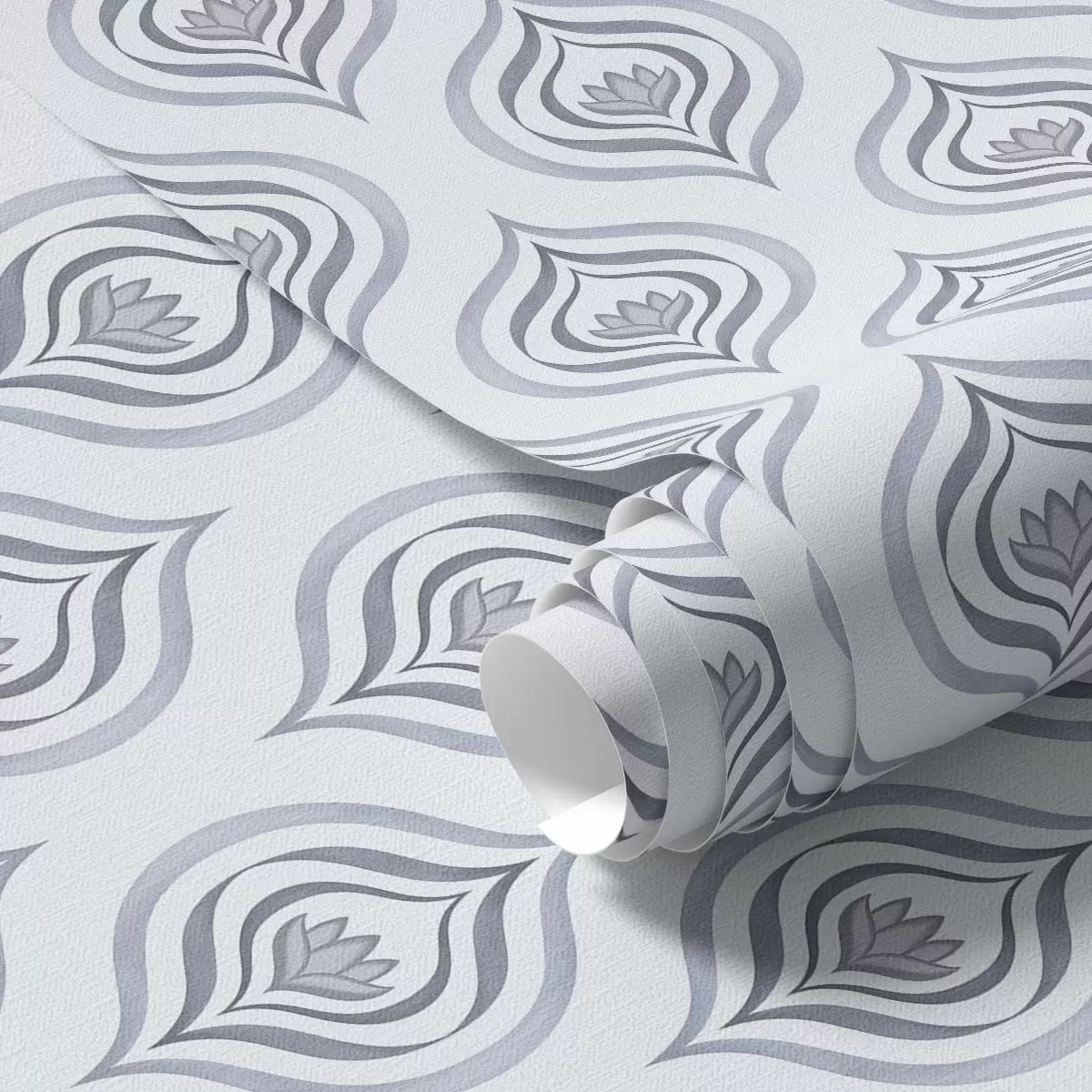 Papel de parede Motivo de gota elegante com uma flor em tons cinza-azulados Nr. a00977v3