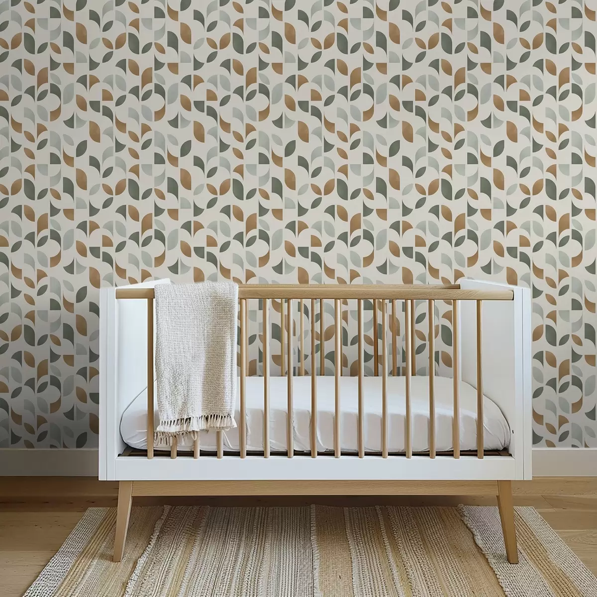 Papel de parede Colunas verticais com semicírculos e folhas, verde-terracota Nr. a00986
