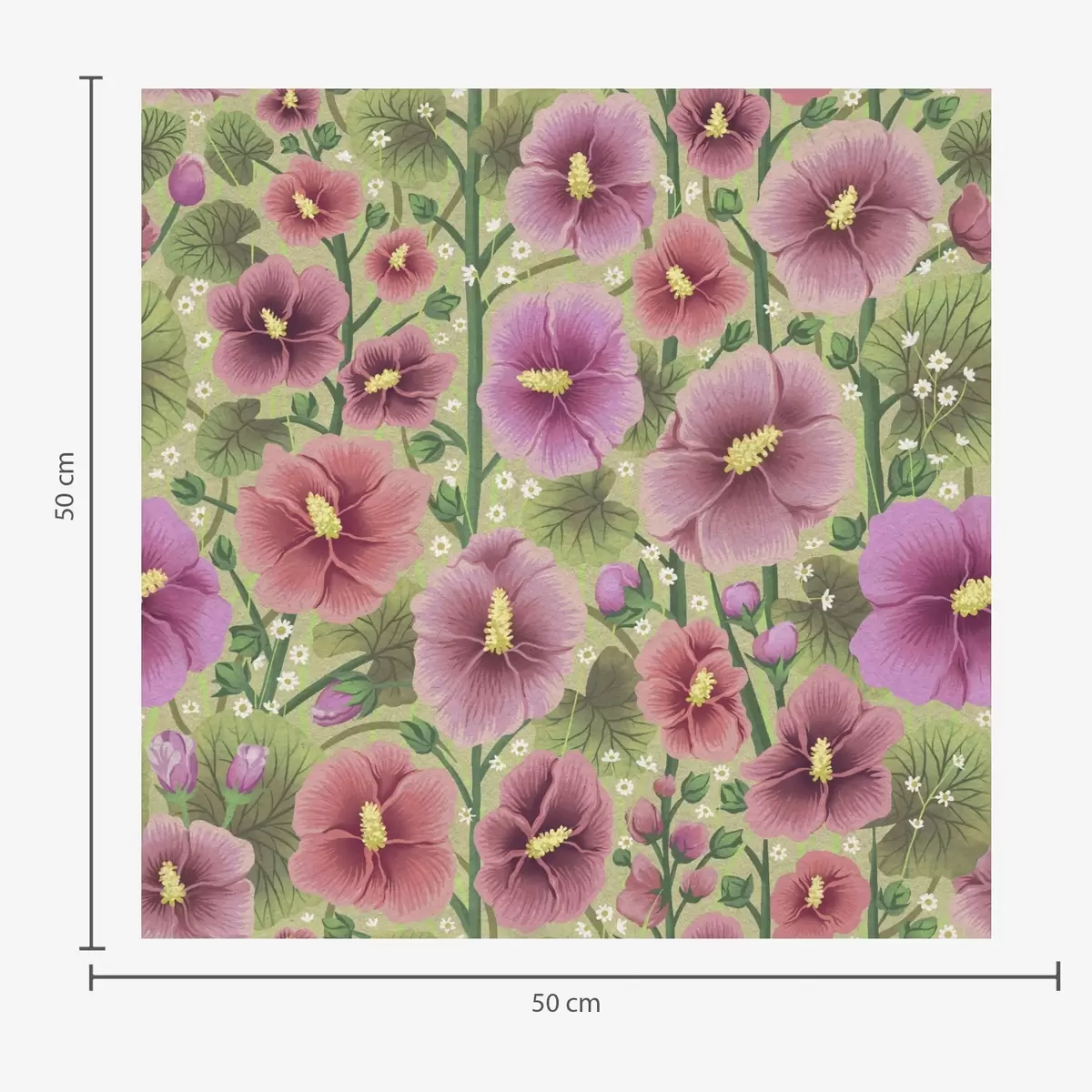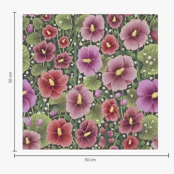 Papel de parede Grandes flores e folhas de hibisco sobre um fundo verde escuro Nr. a00993