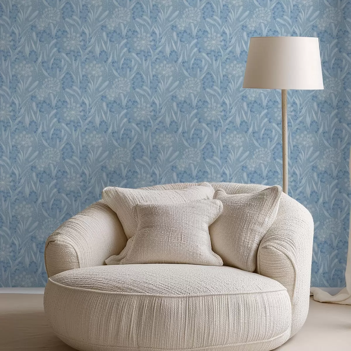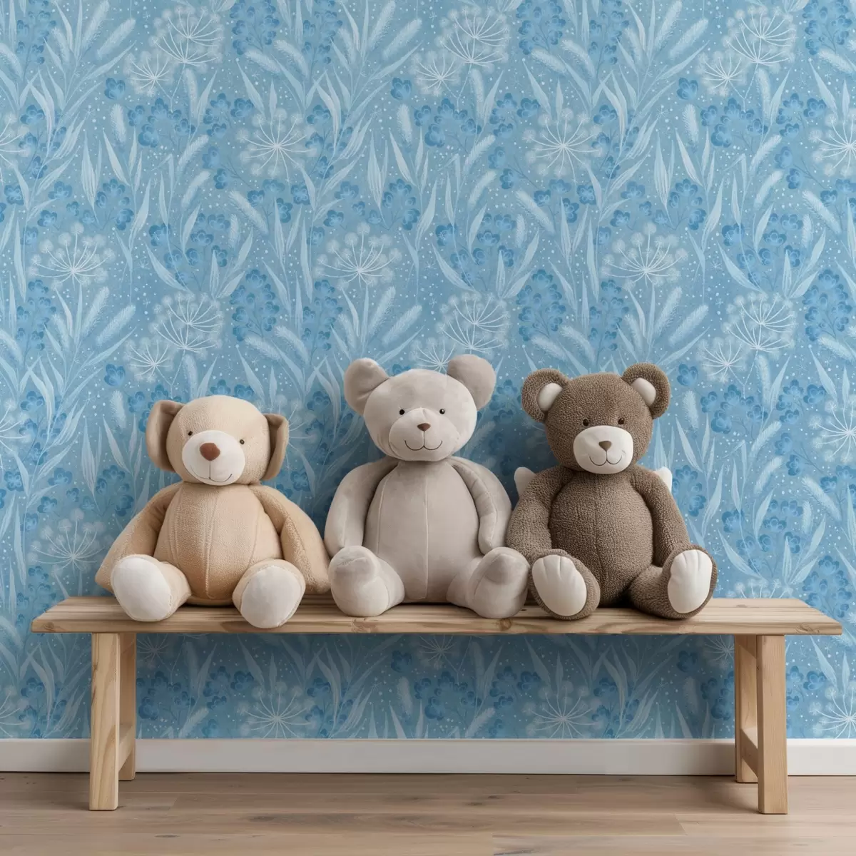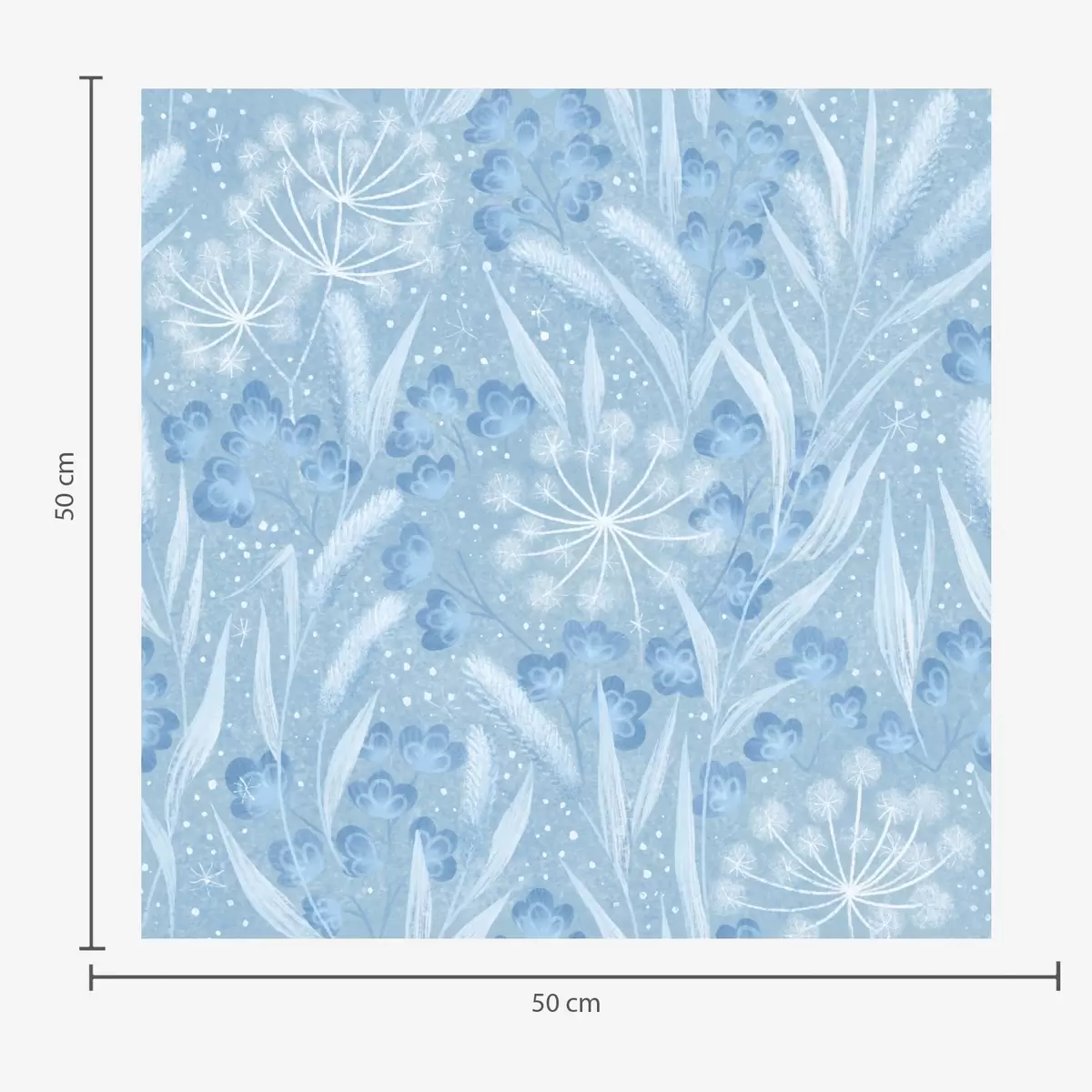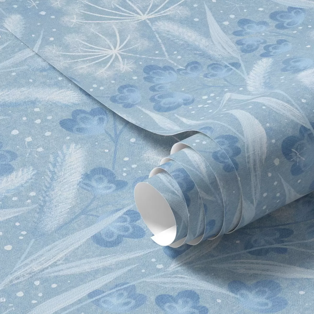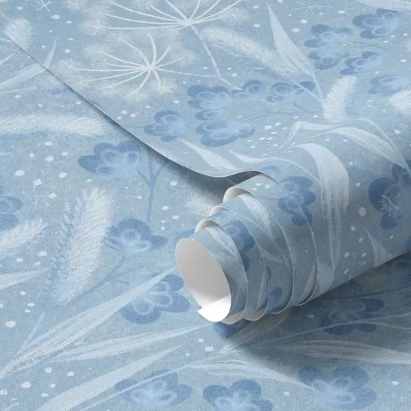 Papel de parede Prado azul gelado com sementes de dente-de-leão e pequenas flores Nr. a00995