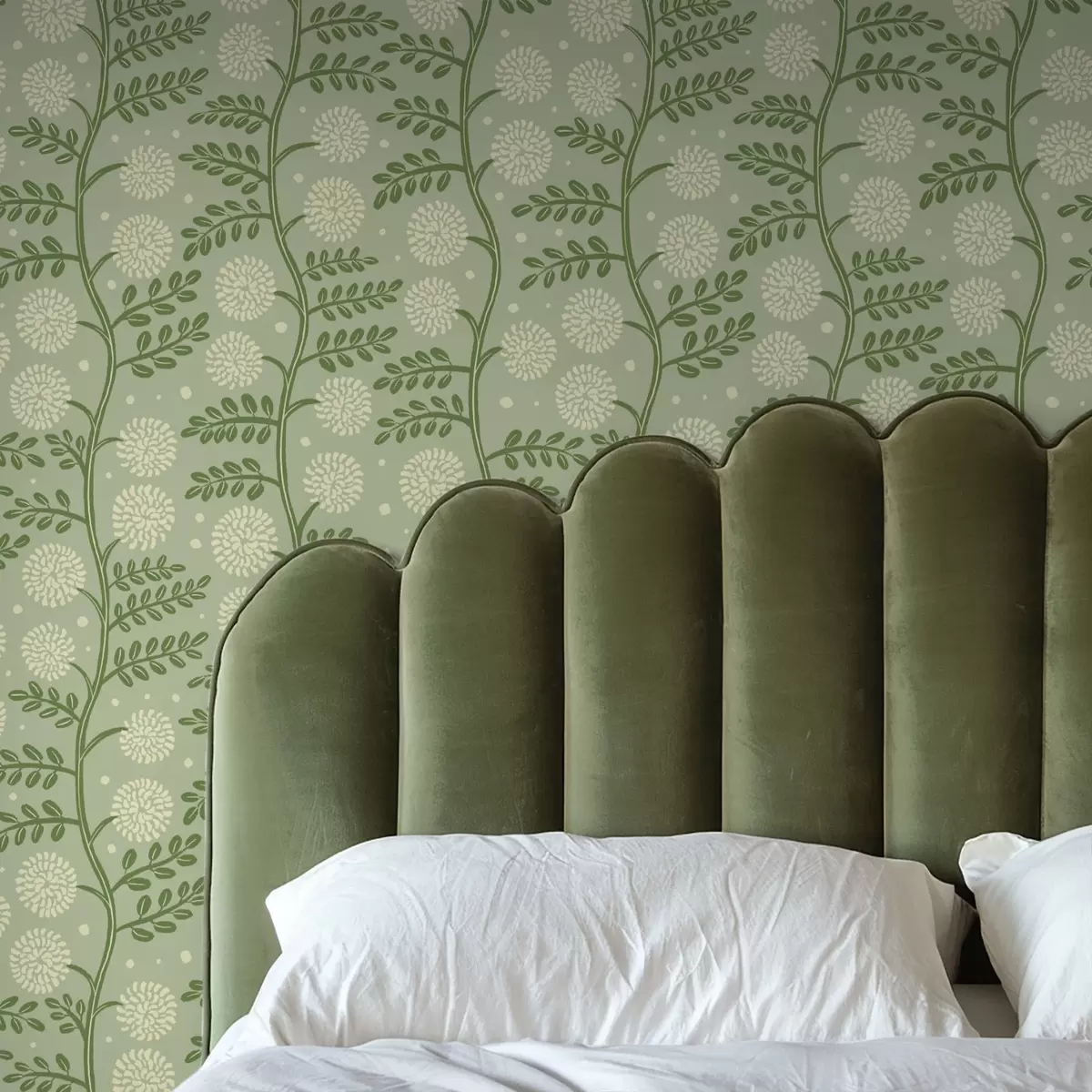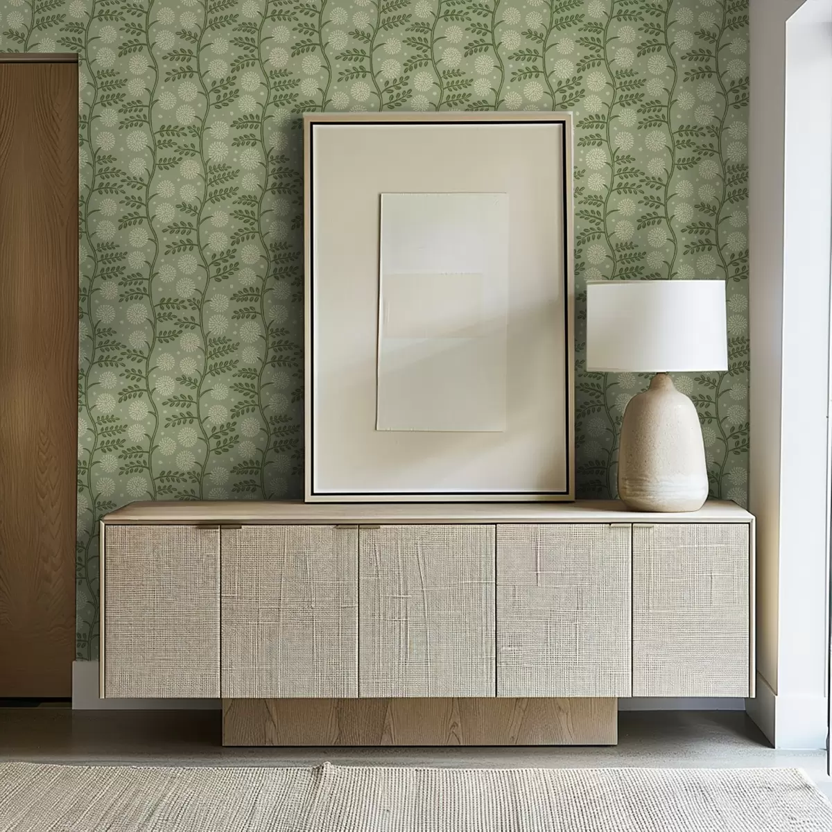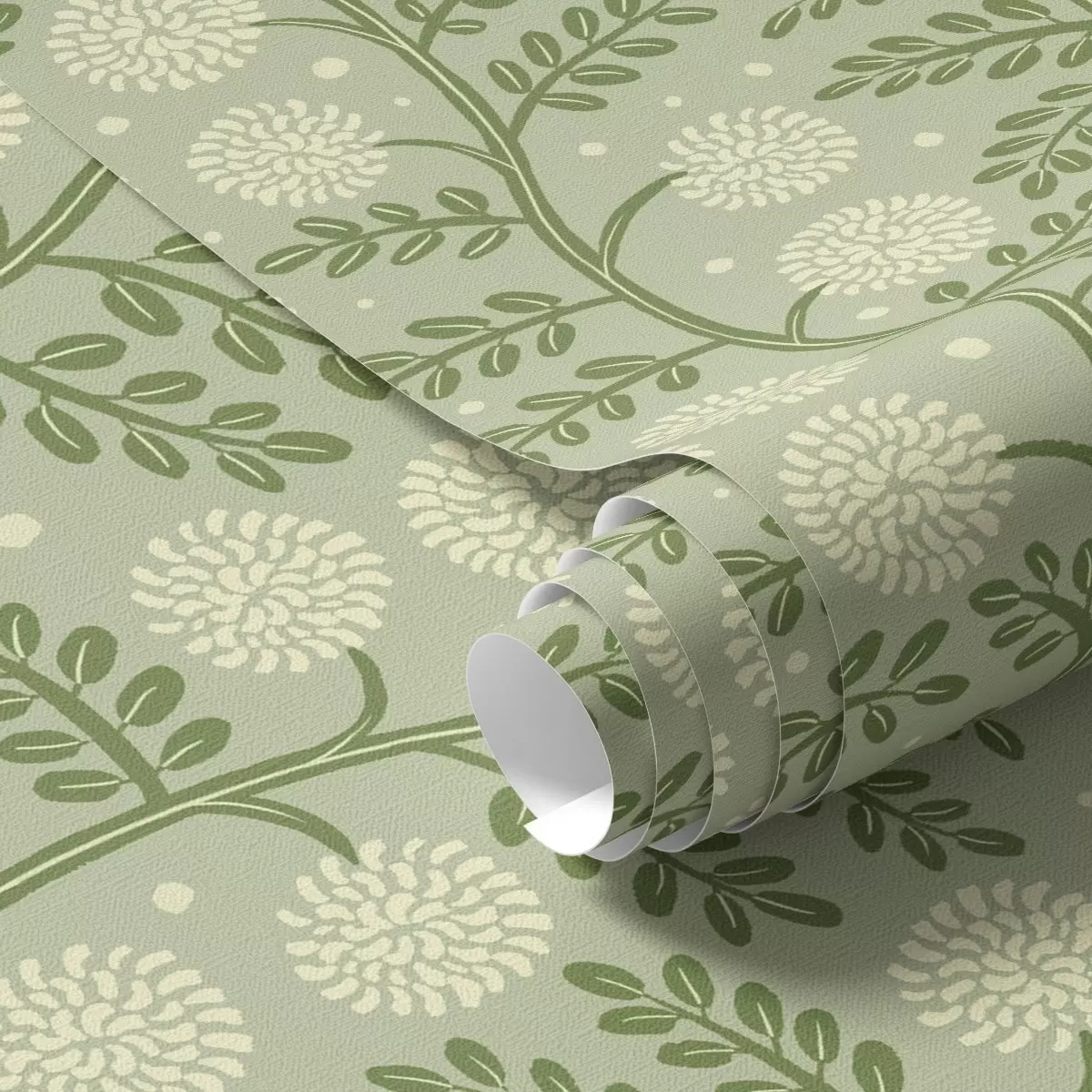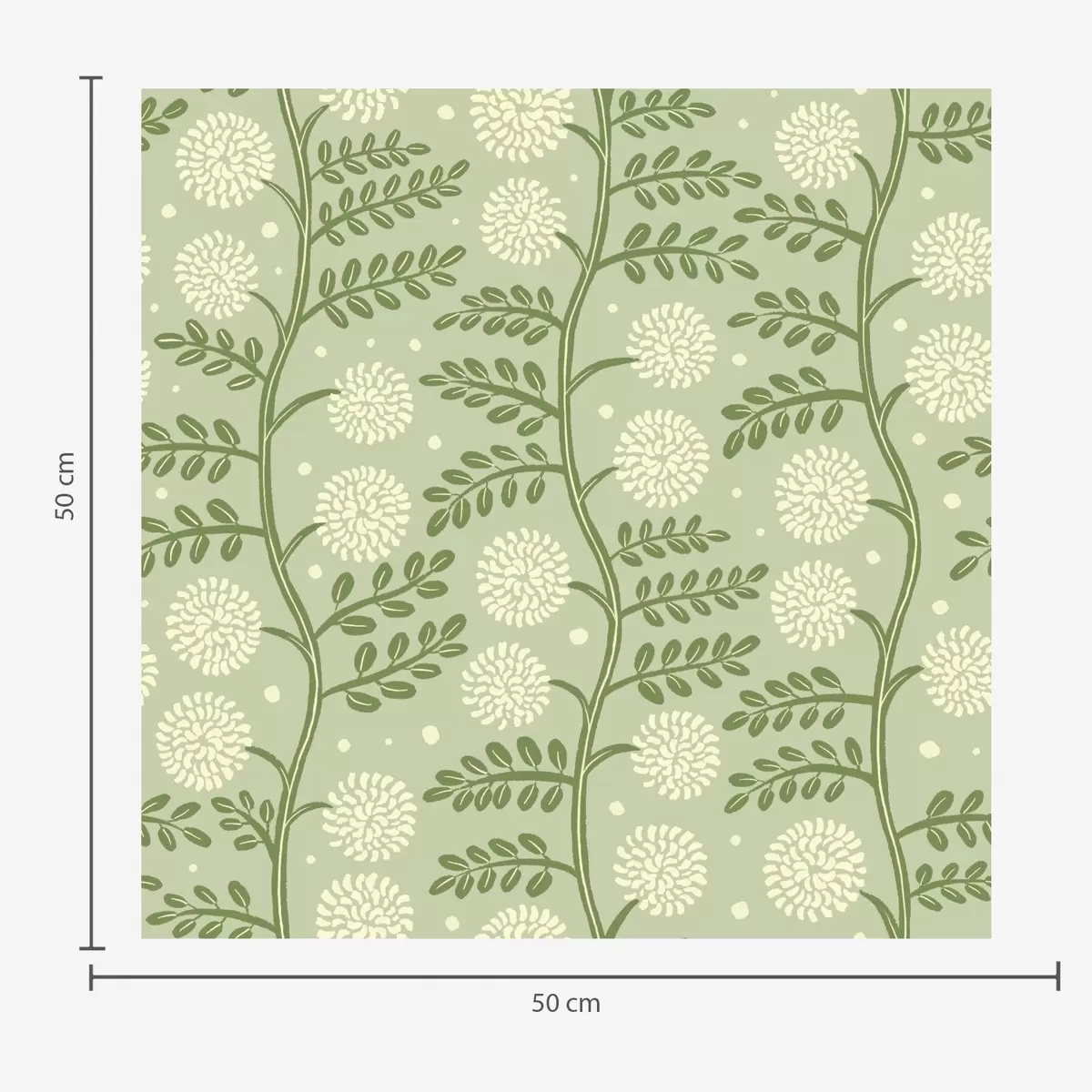 Papel de parede Caules verde-salva com flores fofas em marfim e pontos Nr. a00997v2