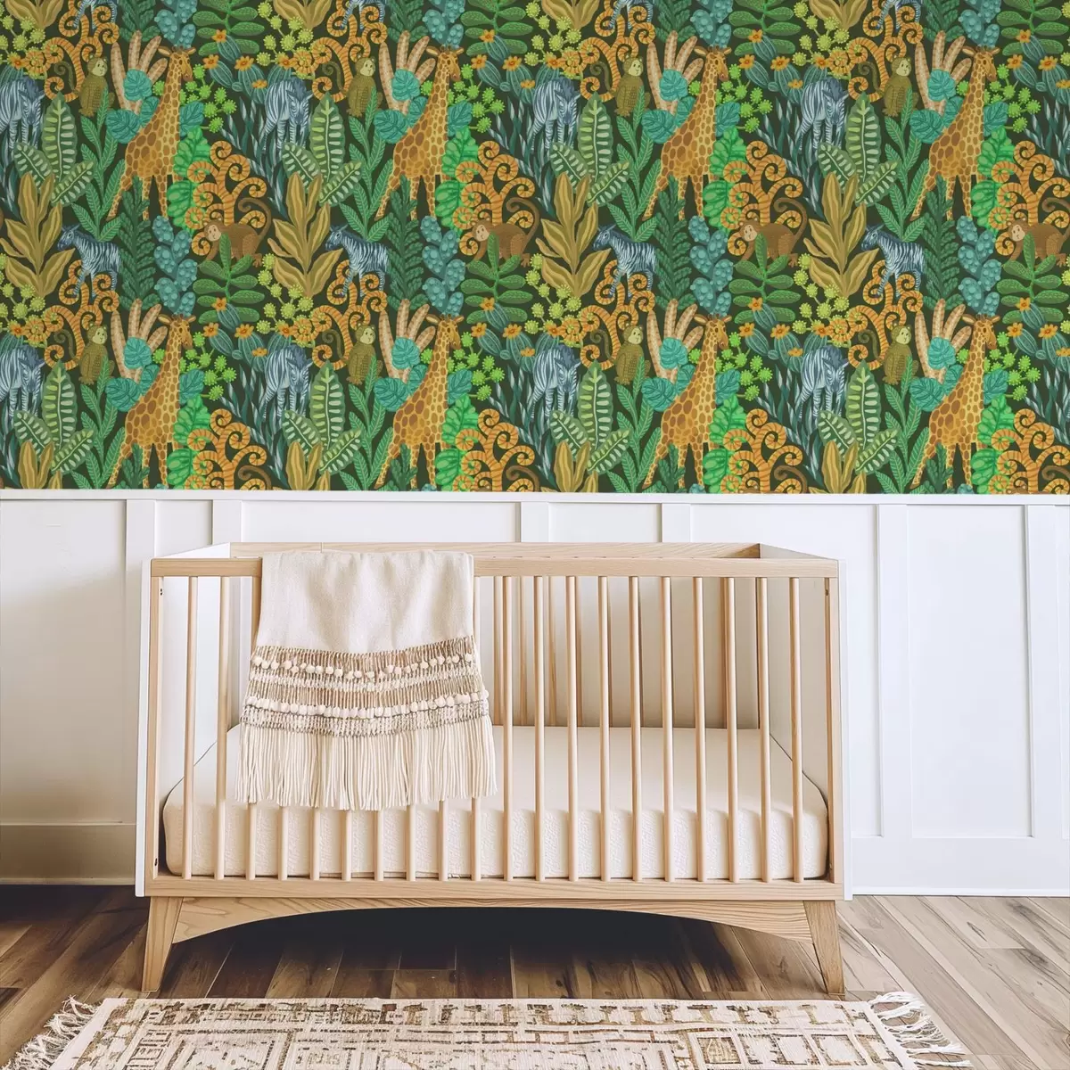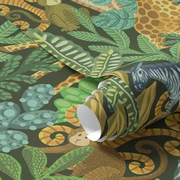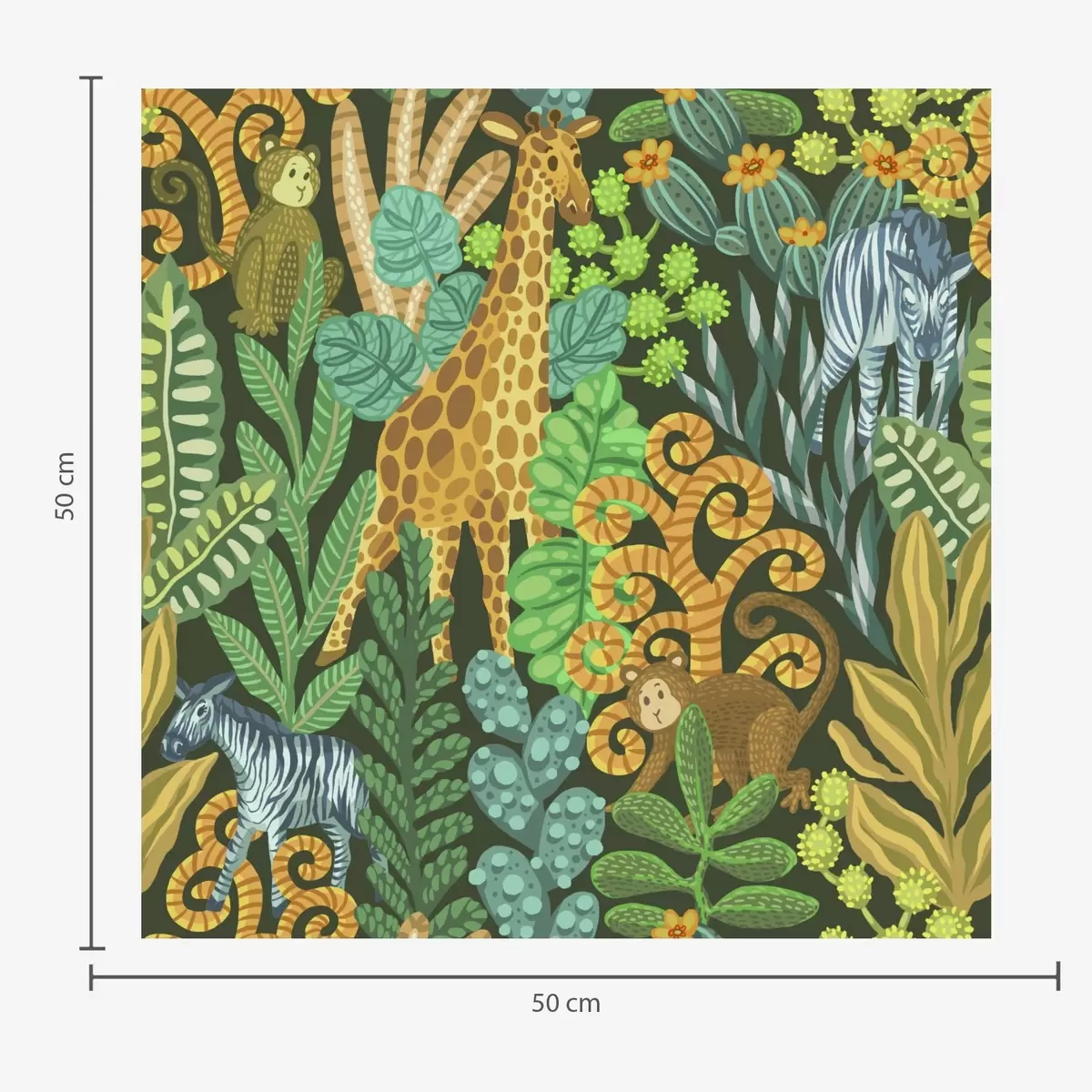 Papel de parede Selva densa com animais num fundo verde escuro Nr. a01000v2