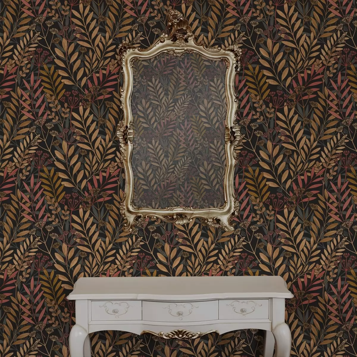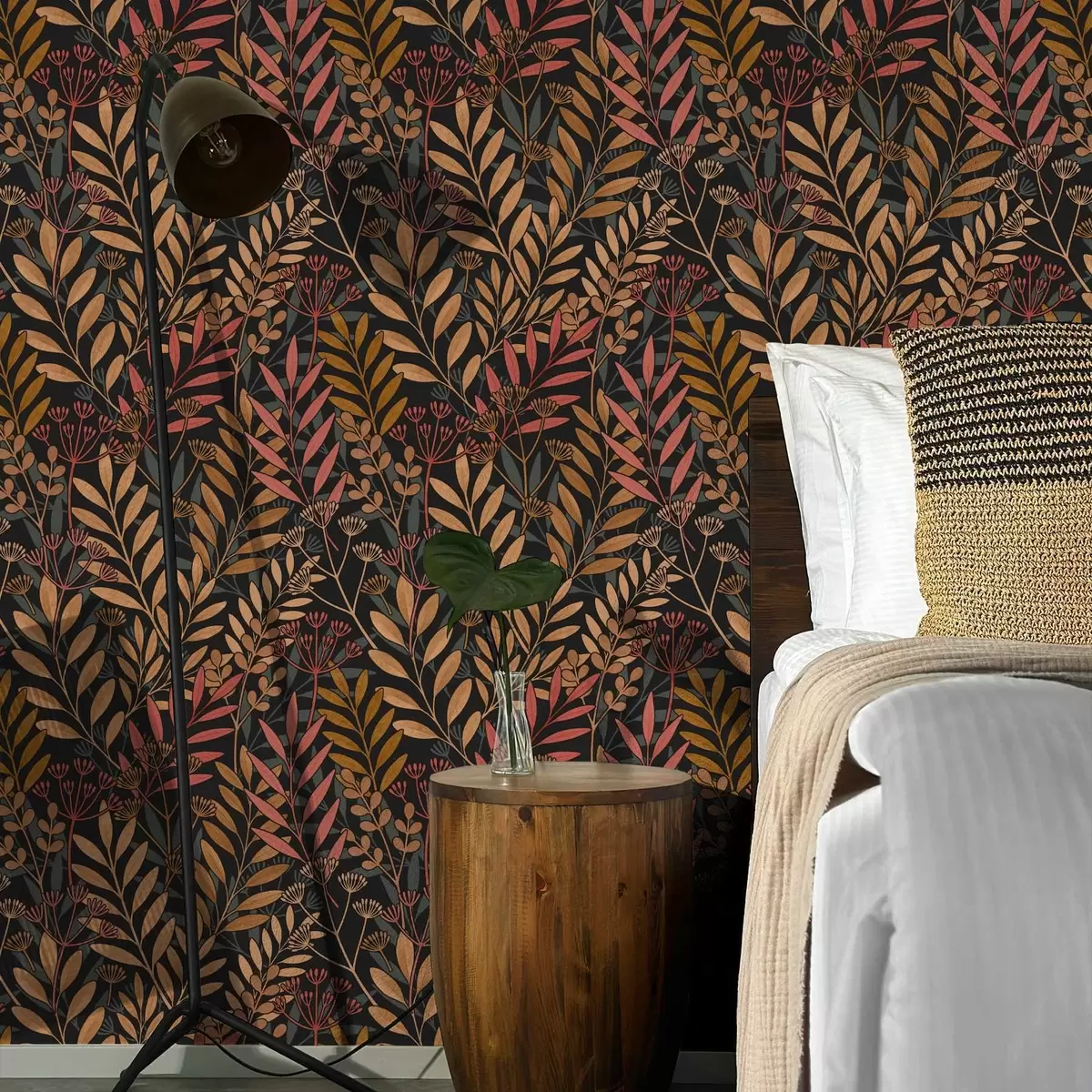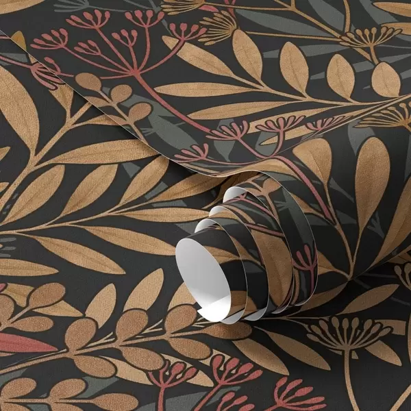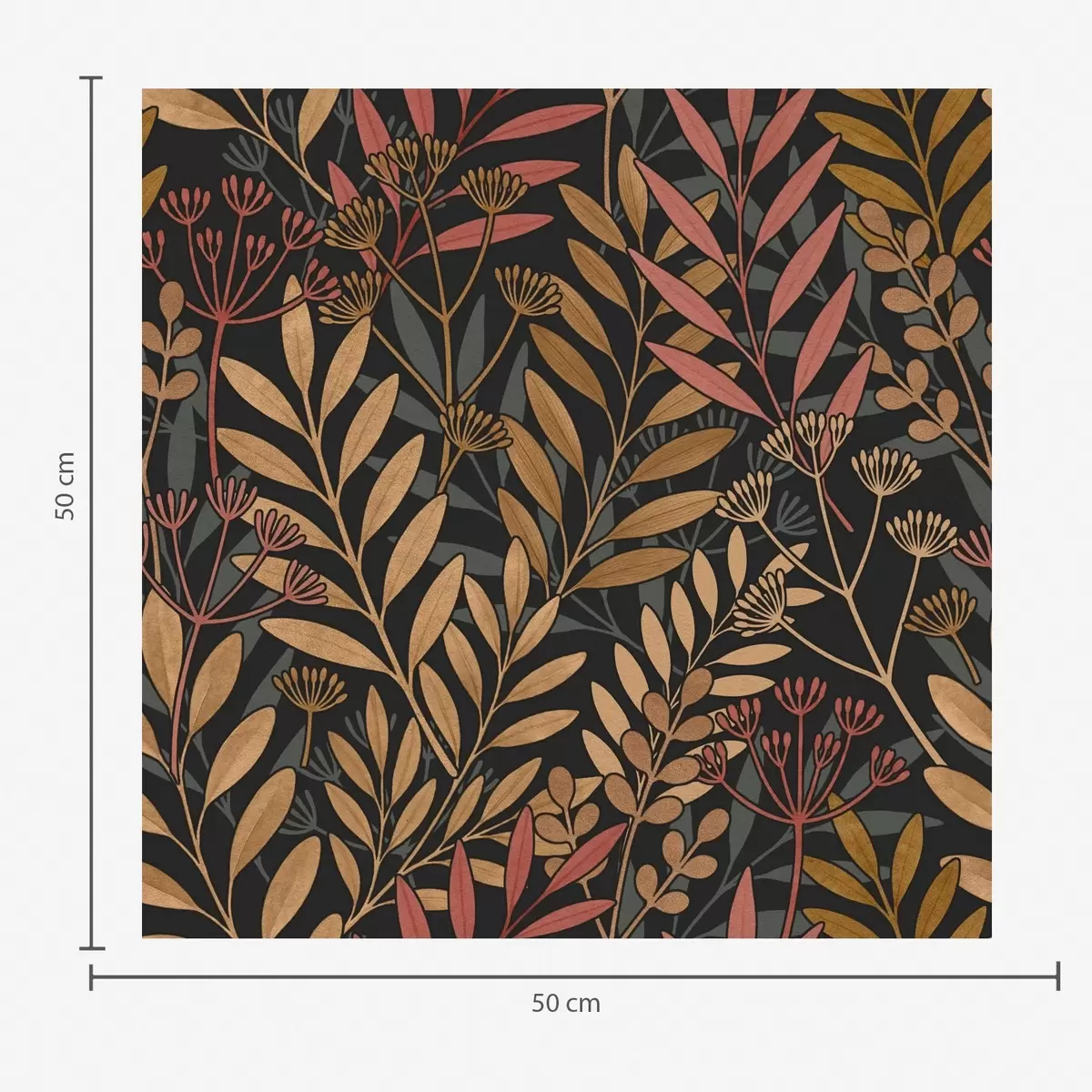Papel de parede Prado escuro com folhas estilizadas e vagens de sementes Nr. a01020