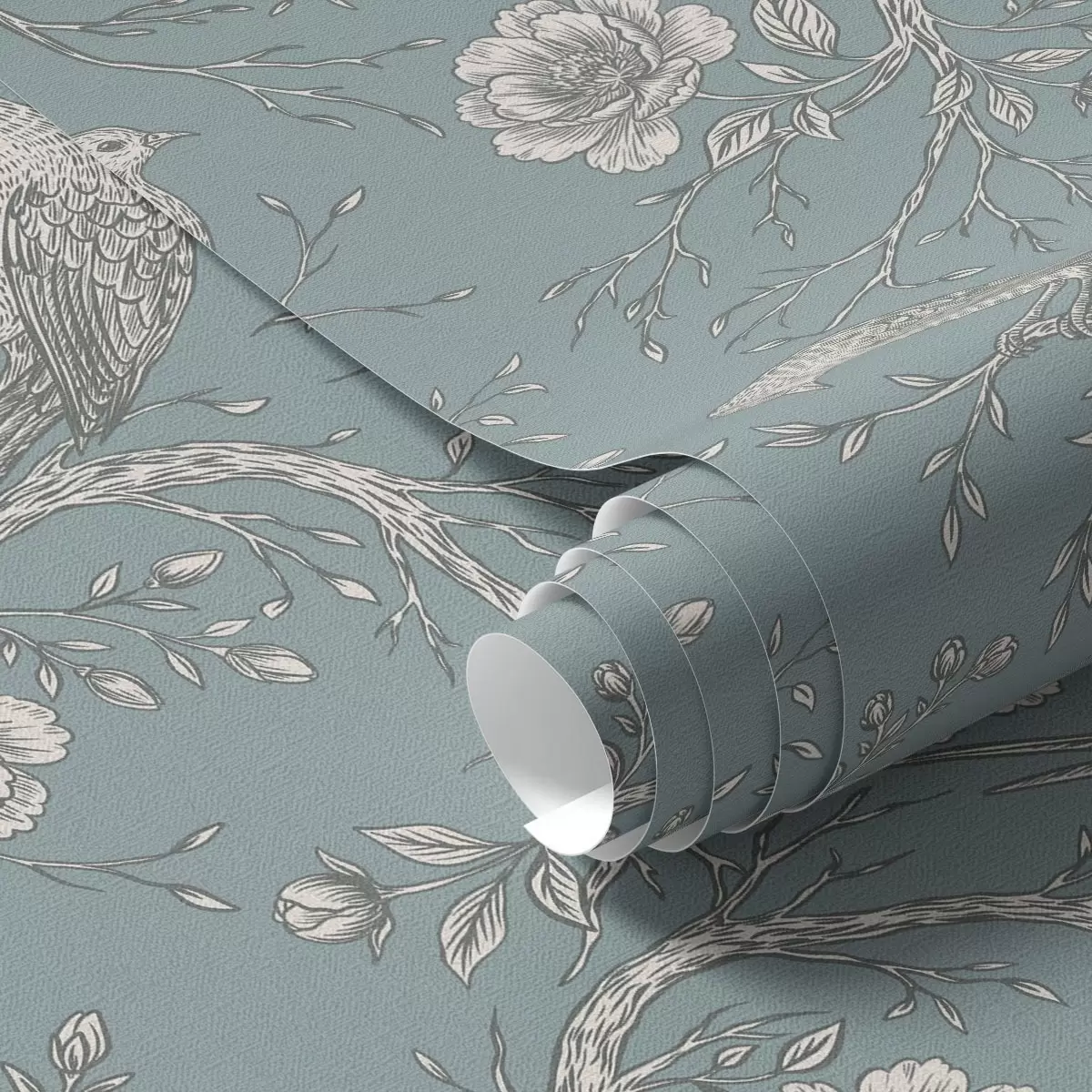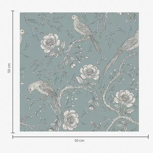 Papel de parede Pássaros desenhados em contorno em galhos, fundo azul suave Nr. a01022