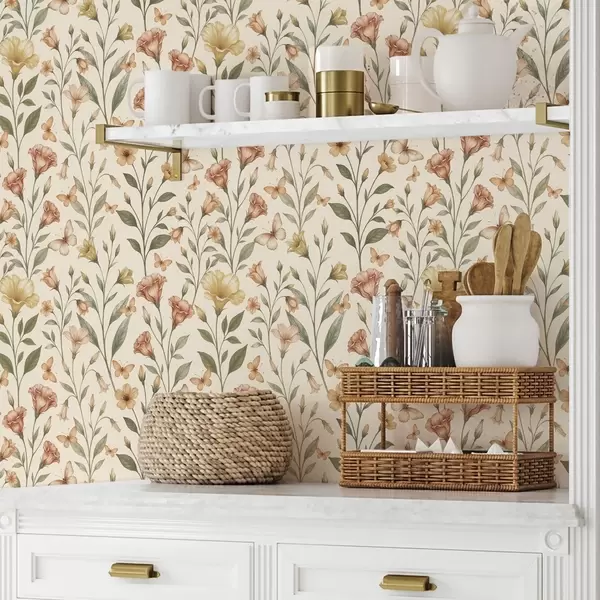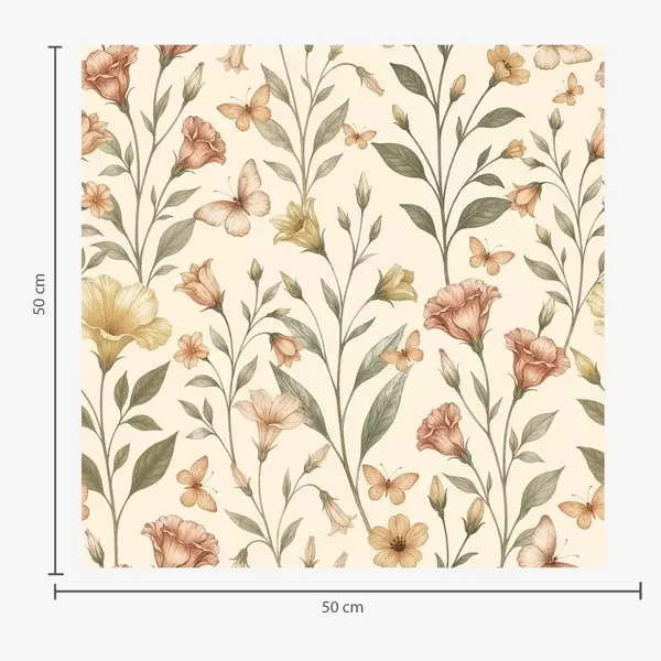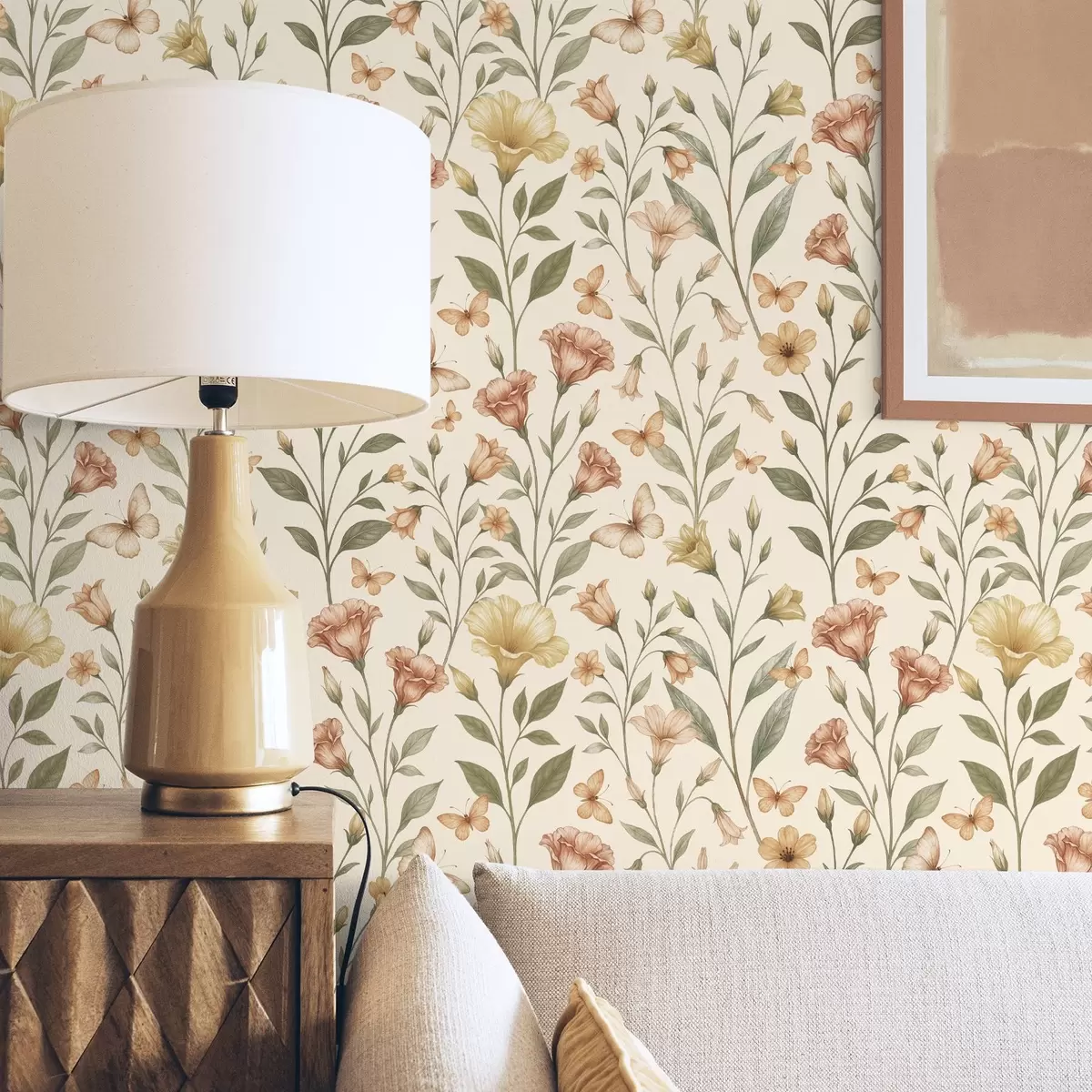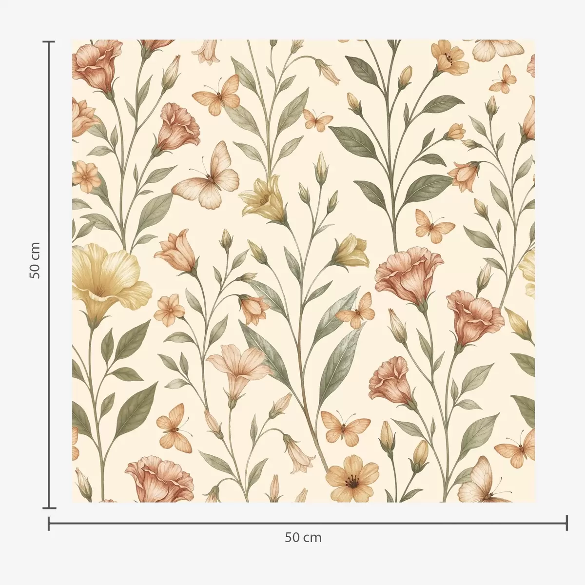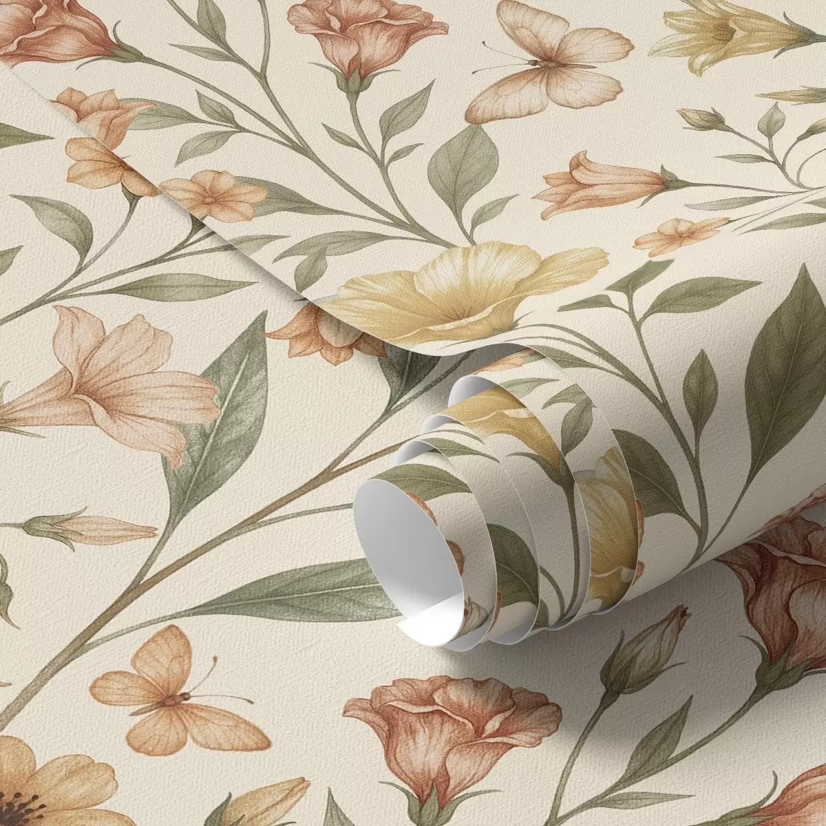 Papel de parede Delicadas flores de pêssego e borboletas sobre um fundo creme quente Nr. a01026