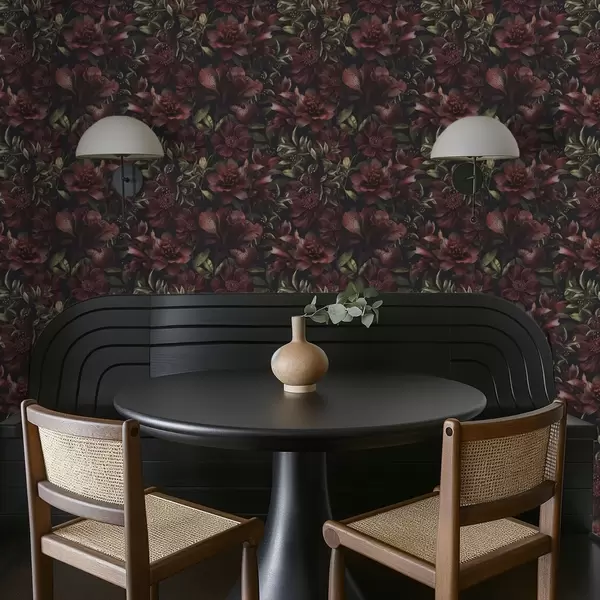Papel de parede Flores bordô intensas sobre fundo escuro a01032