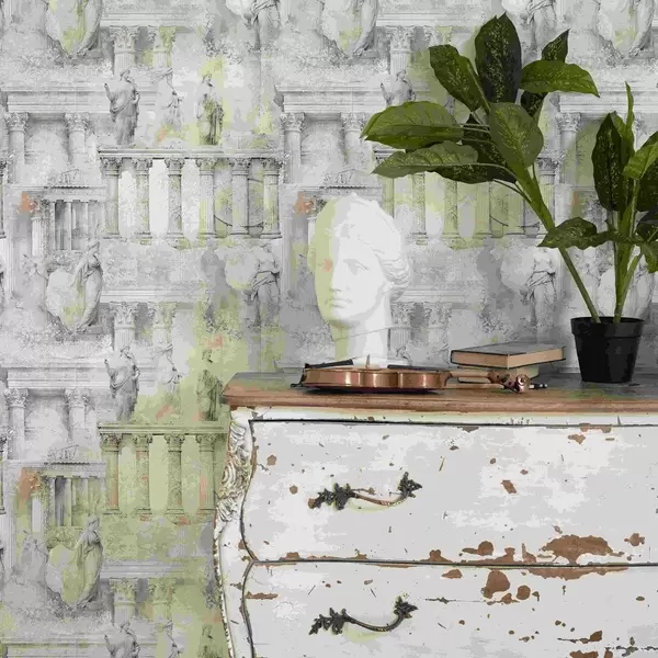 Papel de parede Estátuas e colunas antigas em tons suaves de bege-cinza Nr. a01041