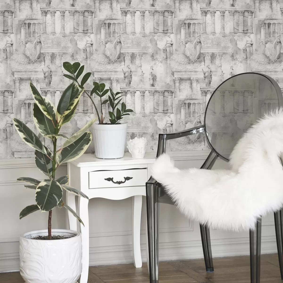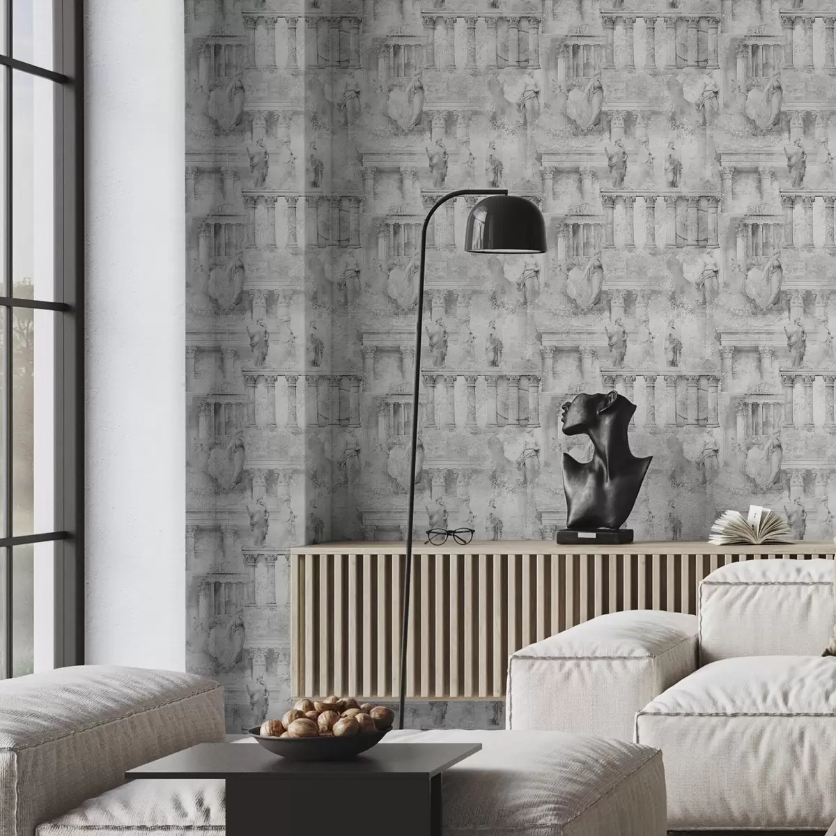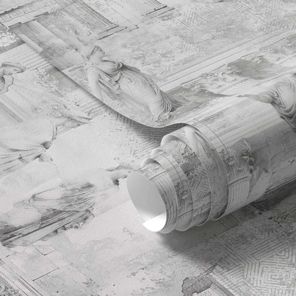 Papel de parede Estátuas e colunas clássicas em tons de cinza desbotado Nr. a01041v1