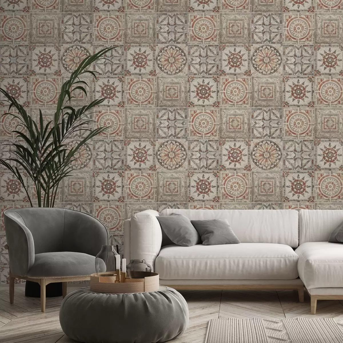 Papel de parede Medalhões antigos de mosaico de pedra com detalhes desgastados Nr. a01042
