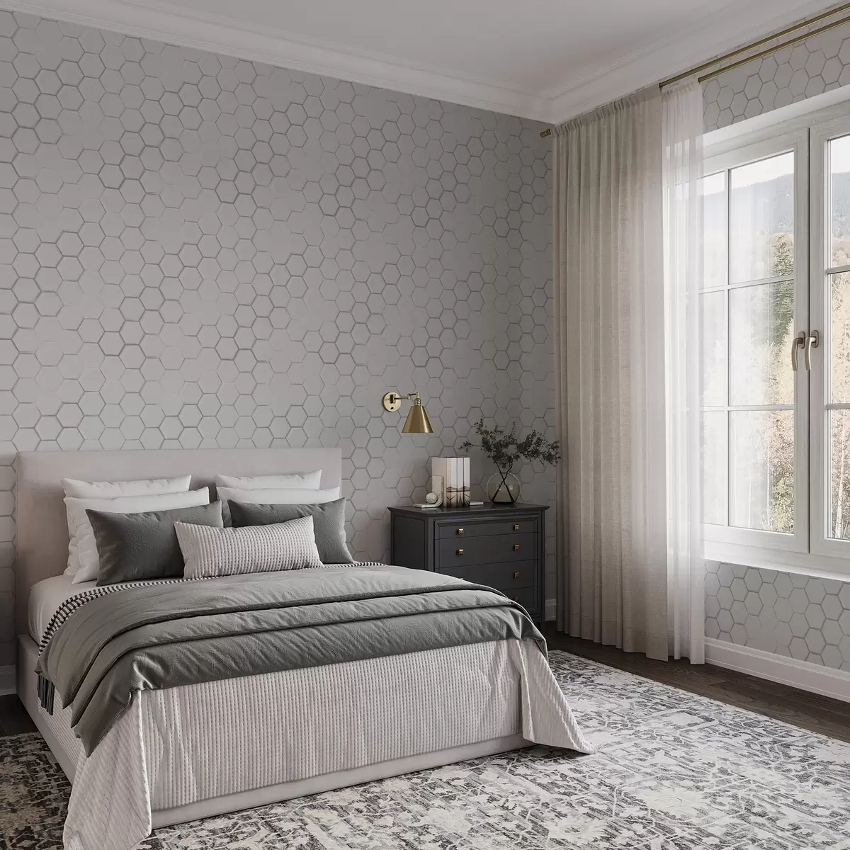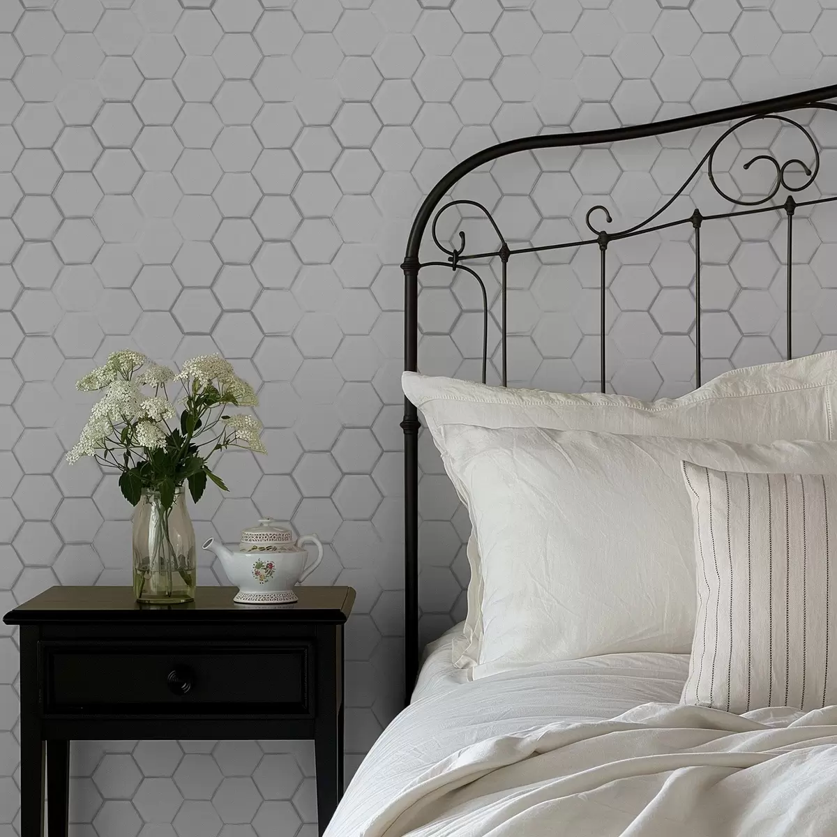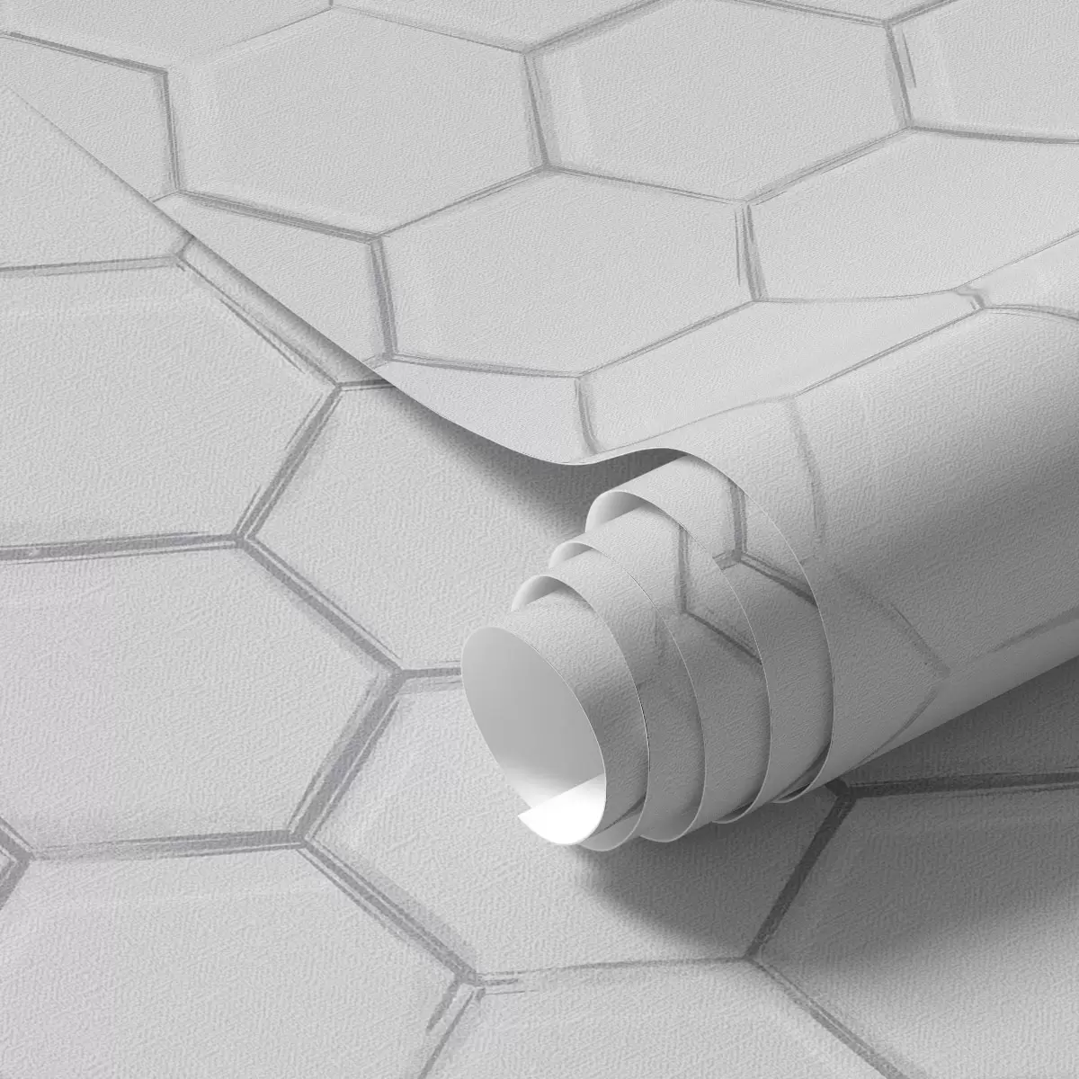 Papel de parede Hexágonos tridimensionais brancos sobre um fundo liso Nr. a01059