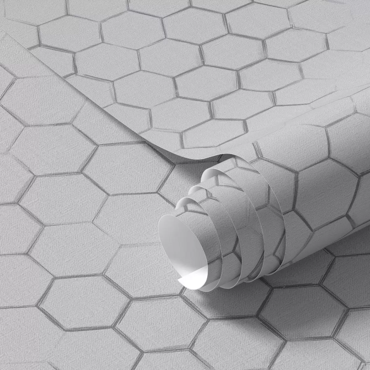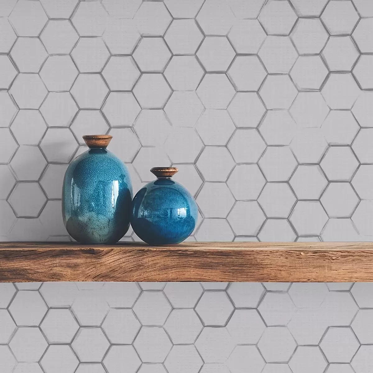 Papel de parede Grelha hexagonal fina sobre um fundo texturado cinzento claro Nr. a01060