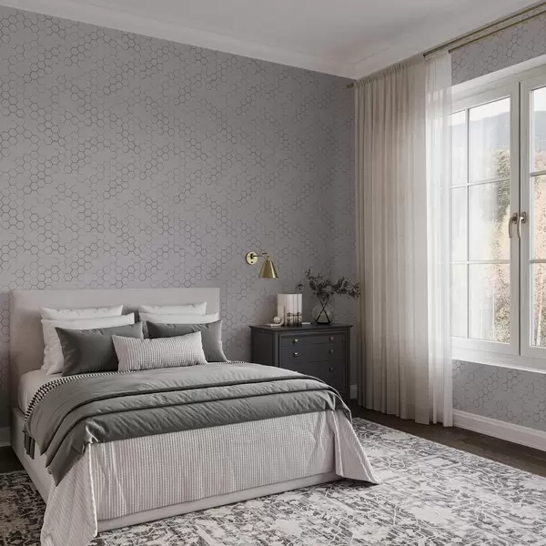 Papel de parede Grelha hexagonal fina sobre um fundo texturado cinzento claro Nr. a01060