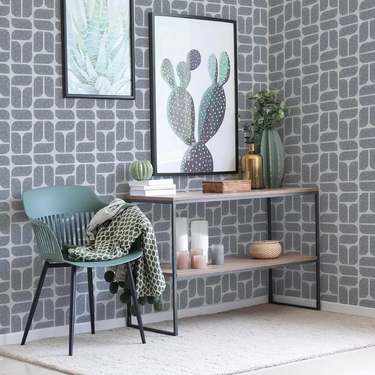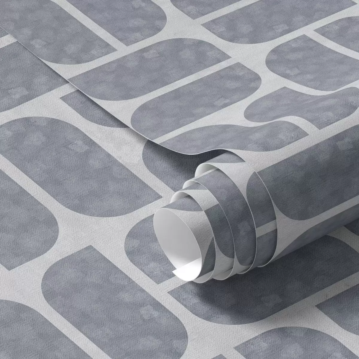 Papel de parede Mosaico cinzento alternando formas arredondadas e retangulares Nr. a01069