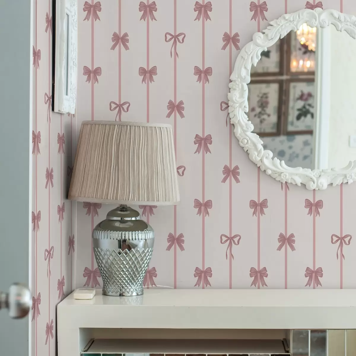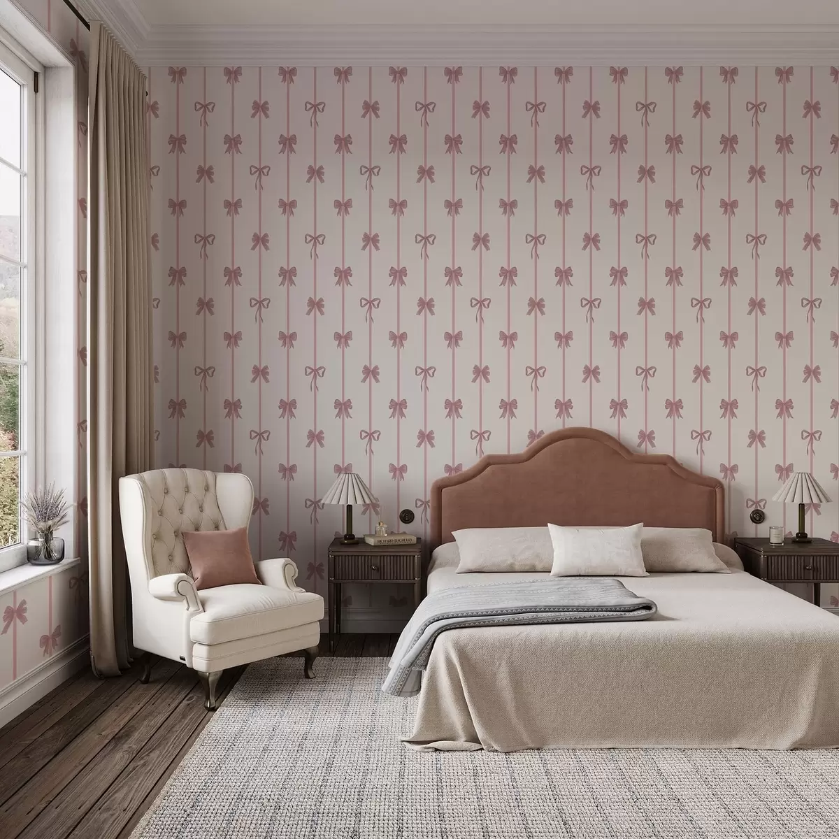 Papel de parede Laços cor-de-rosa com fitas sobre um fundo claro Nr. a01074