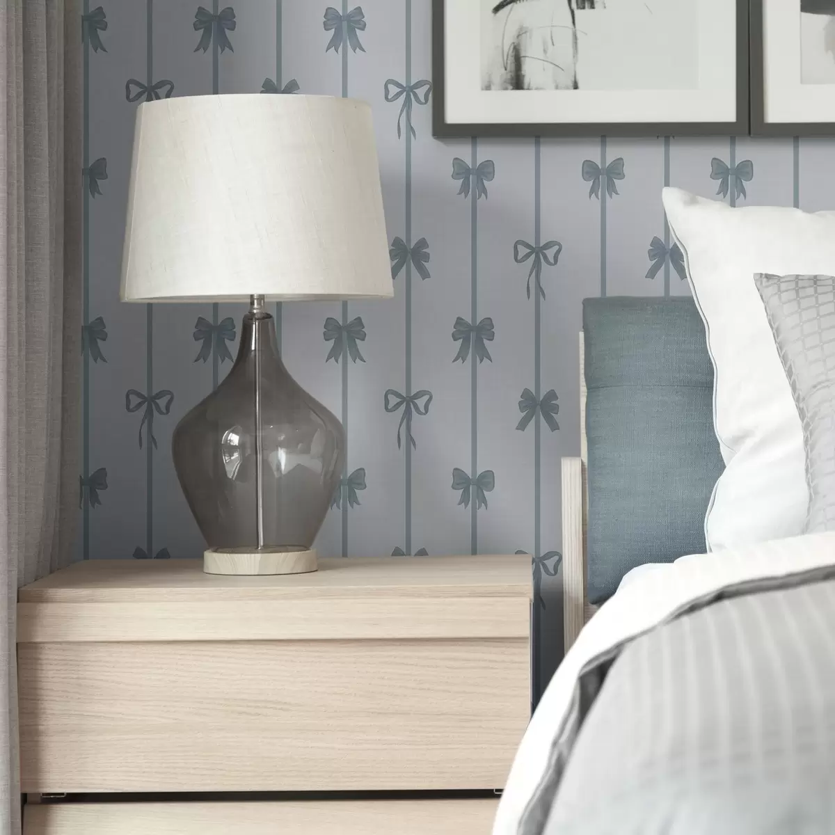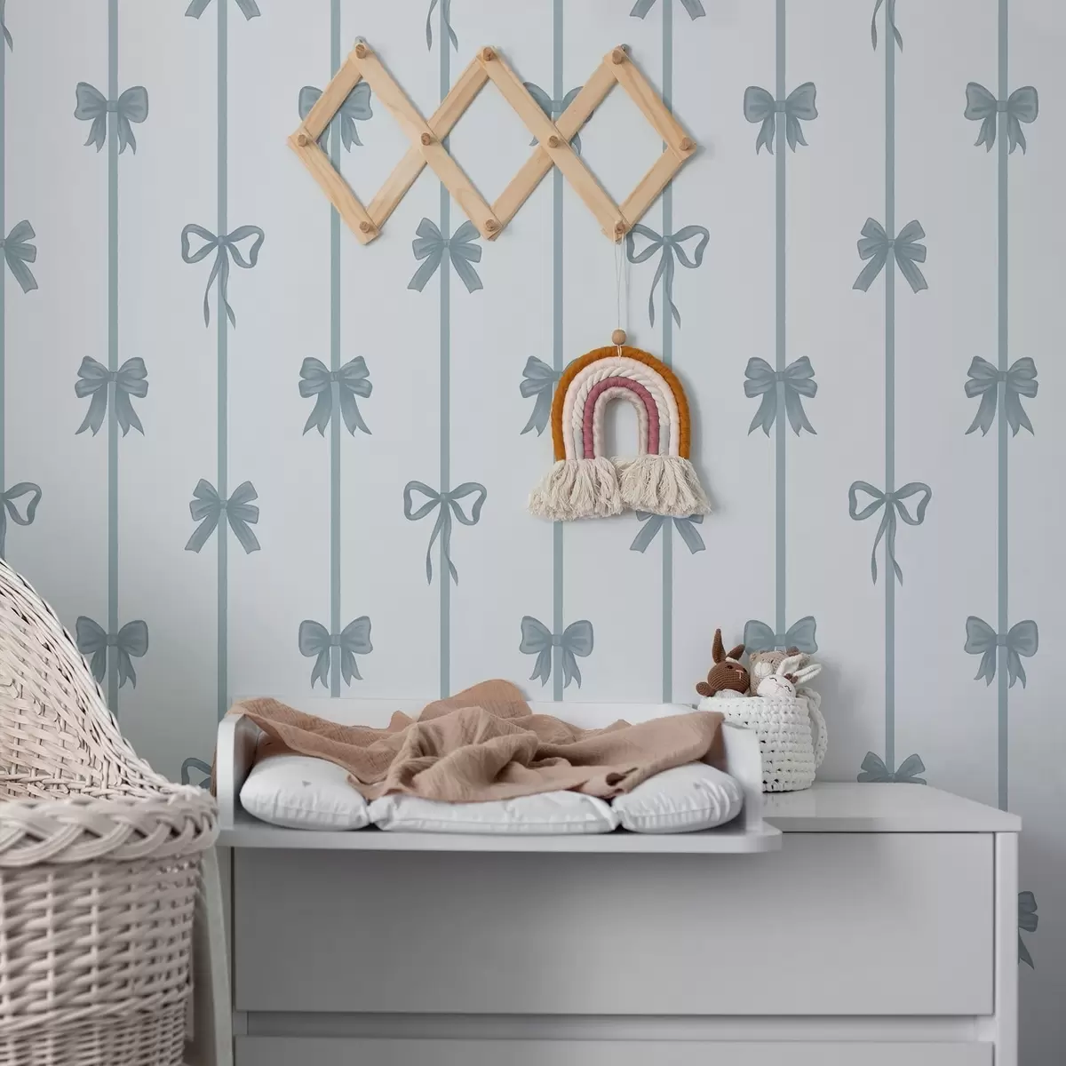 Papel de parede Laços azuis com fitas sobre um fundo claro Nr. a01074v2