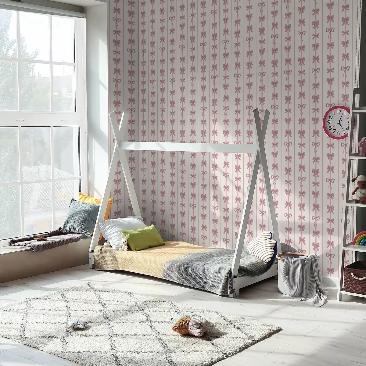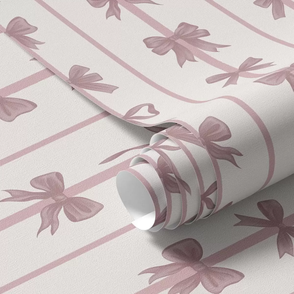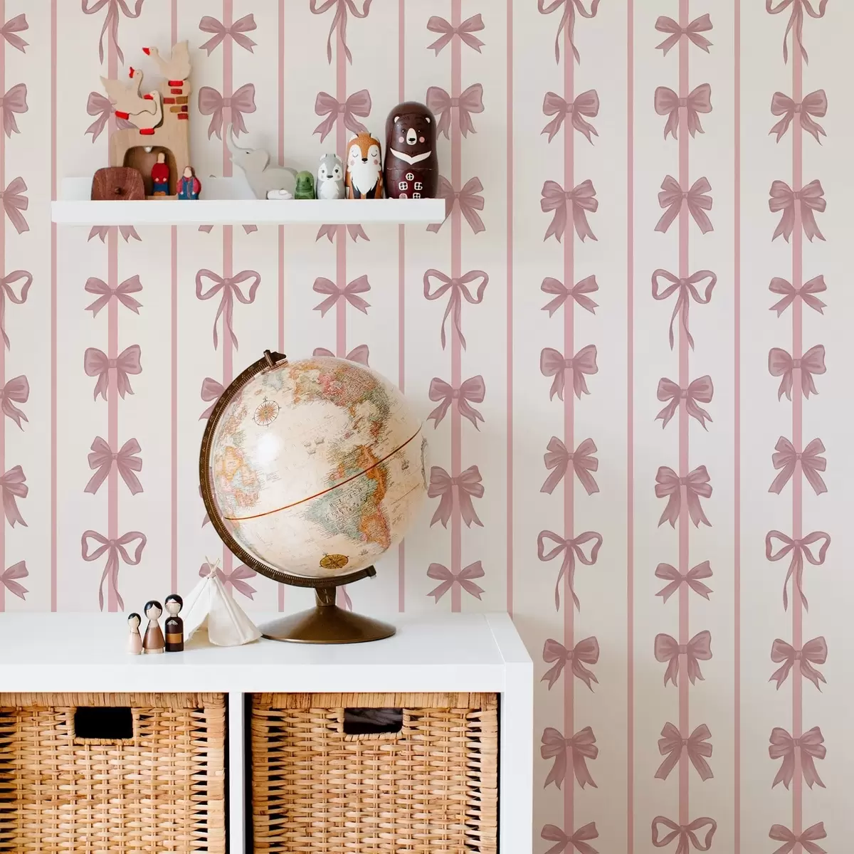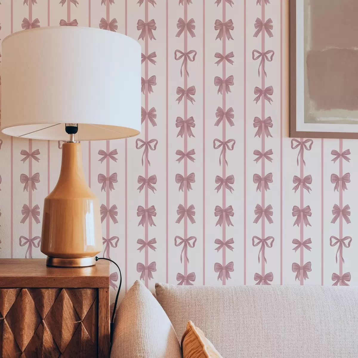 Papel de parede Laços cor-de-rosa em riscas verticais sobre um fundo claro Nr. a01075