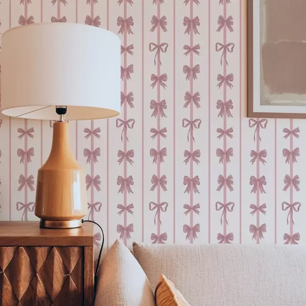 Papel de parede Laços cor-de-rosa em riscas verticais sobre um fundo claro Nr. a01075