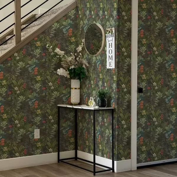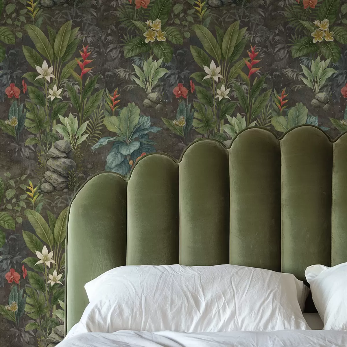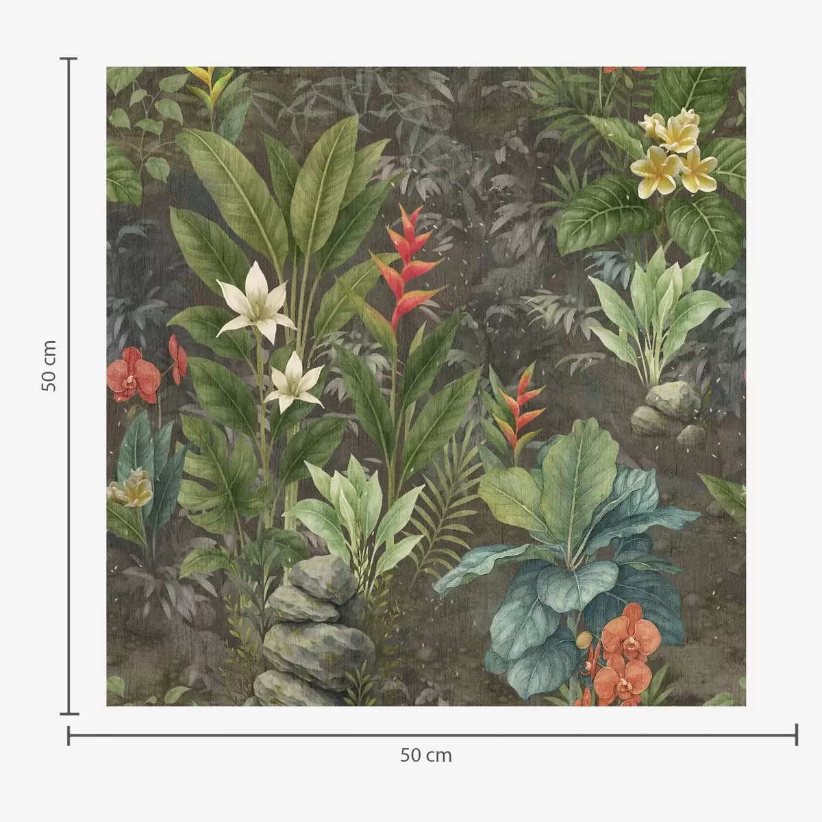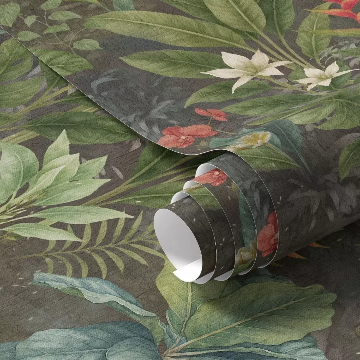 Papel de parede Jardim tropical escuro com flores e folhagens brilhantes Nr. a01079