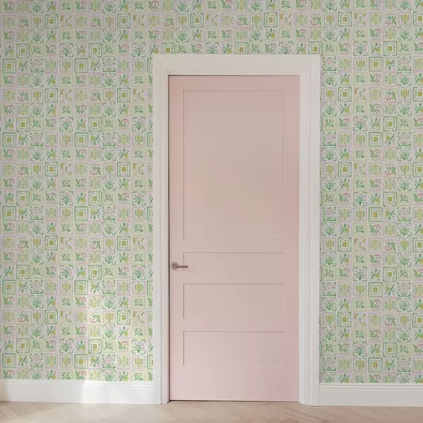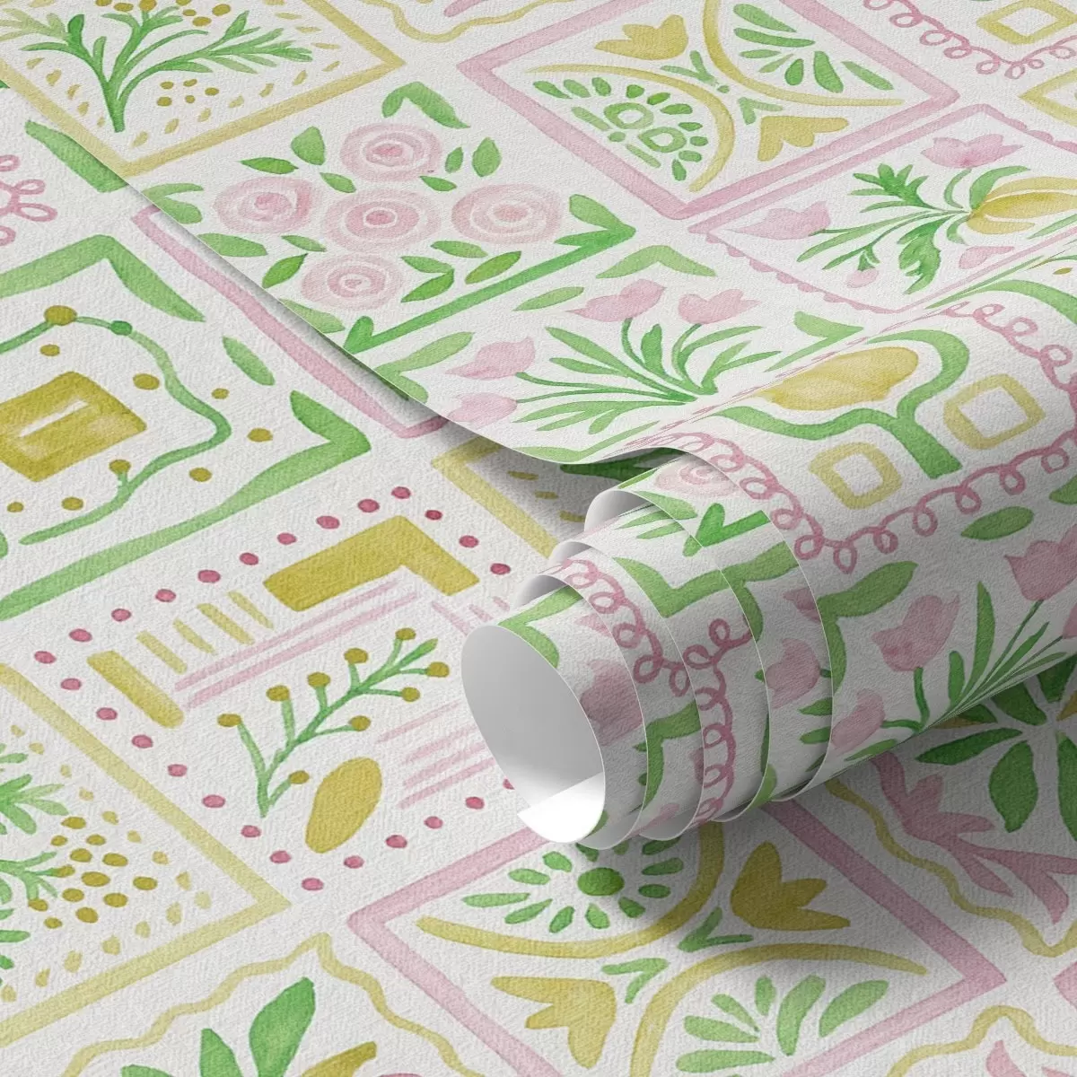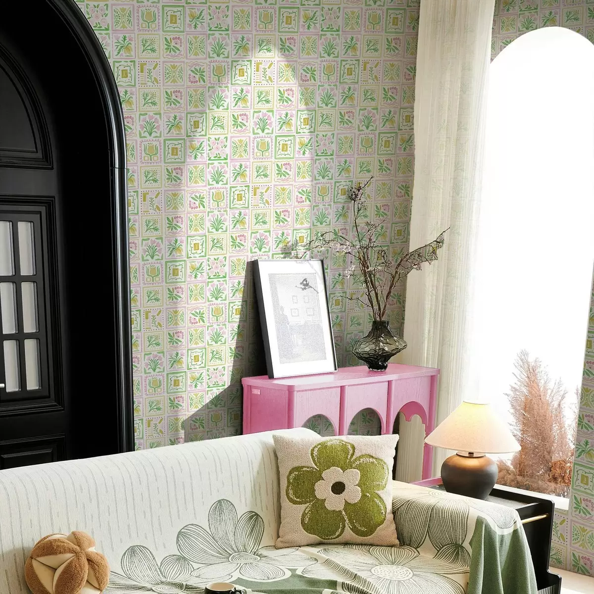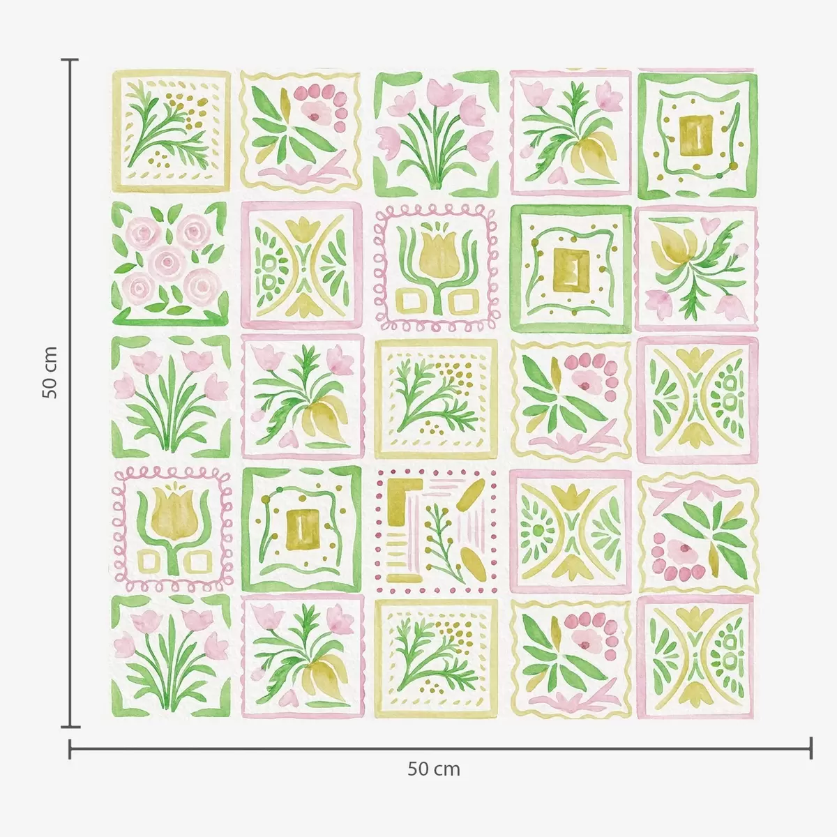 Papel de parede Quadrados em aquarela com ramos rosa e verdes Nr. a01082