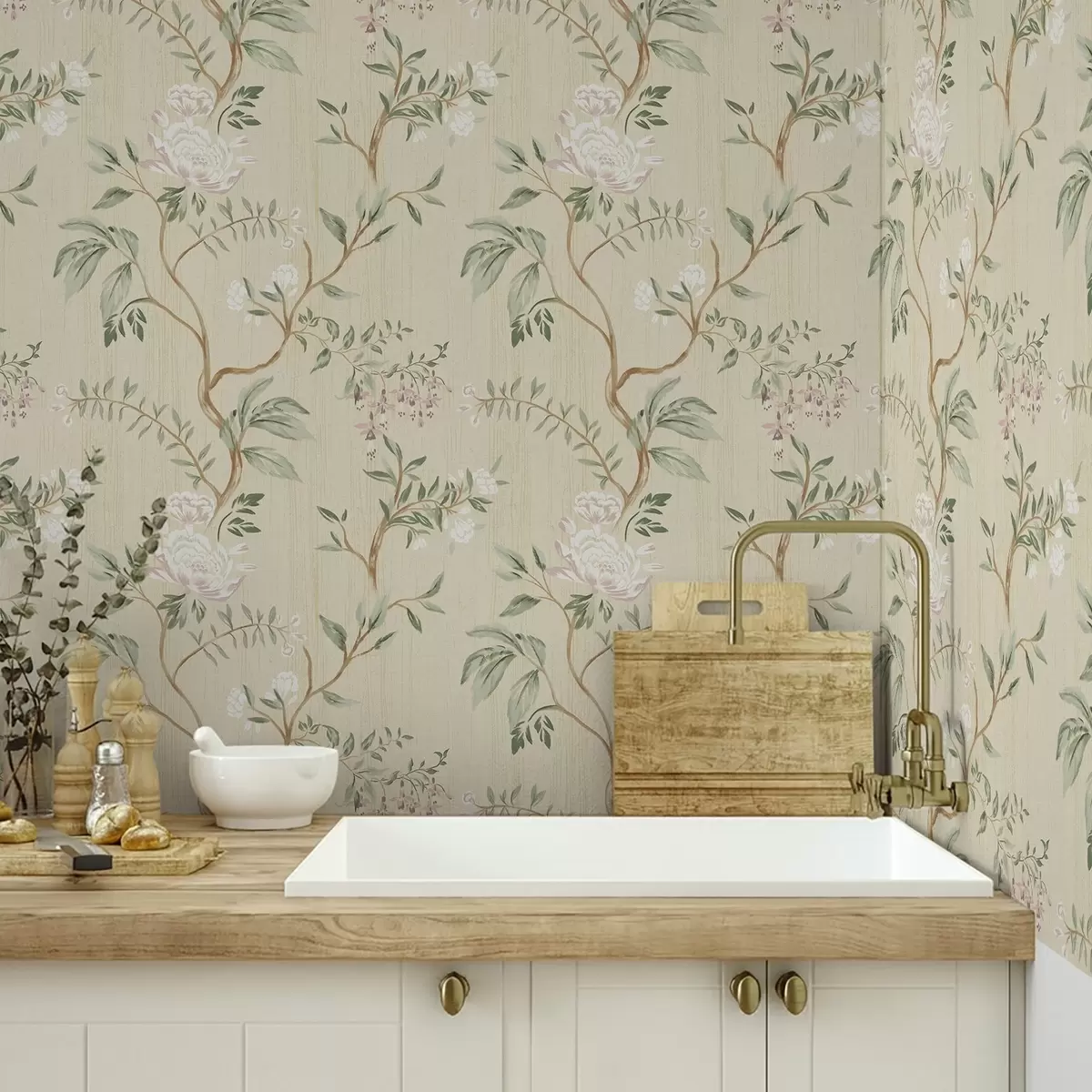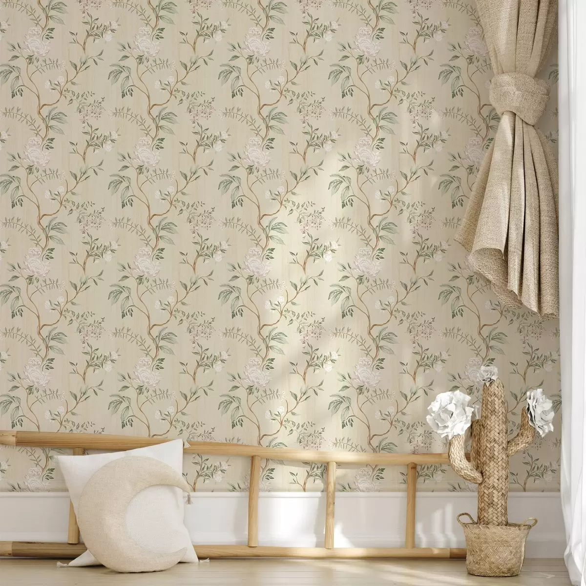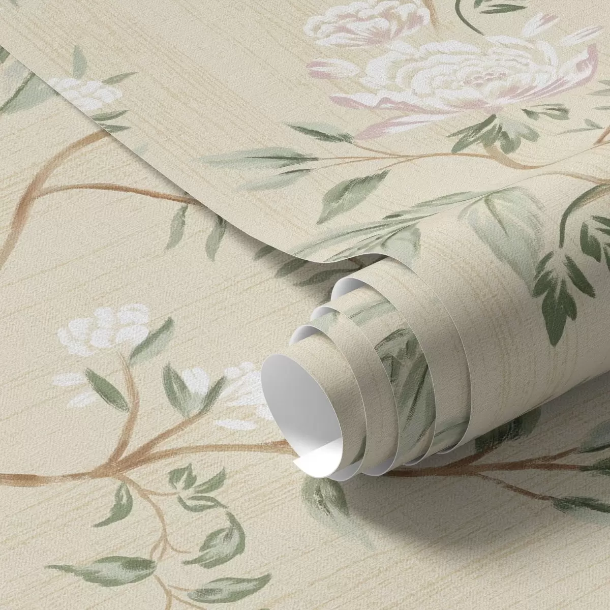 Papel de parede Ramos delicados com flores sobre um fundo creme quente Nr. a01084
