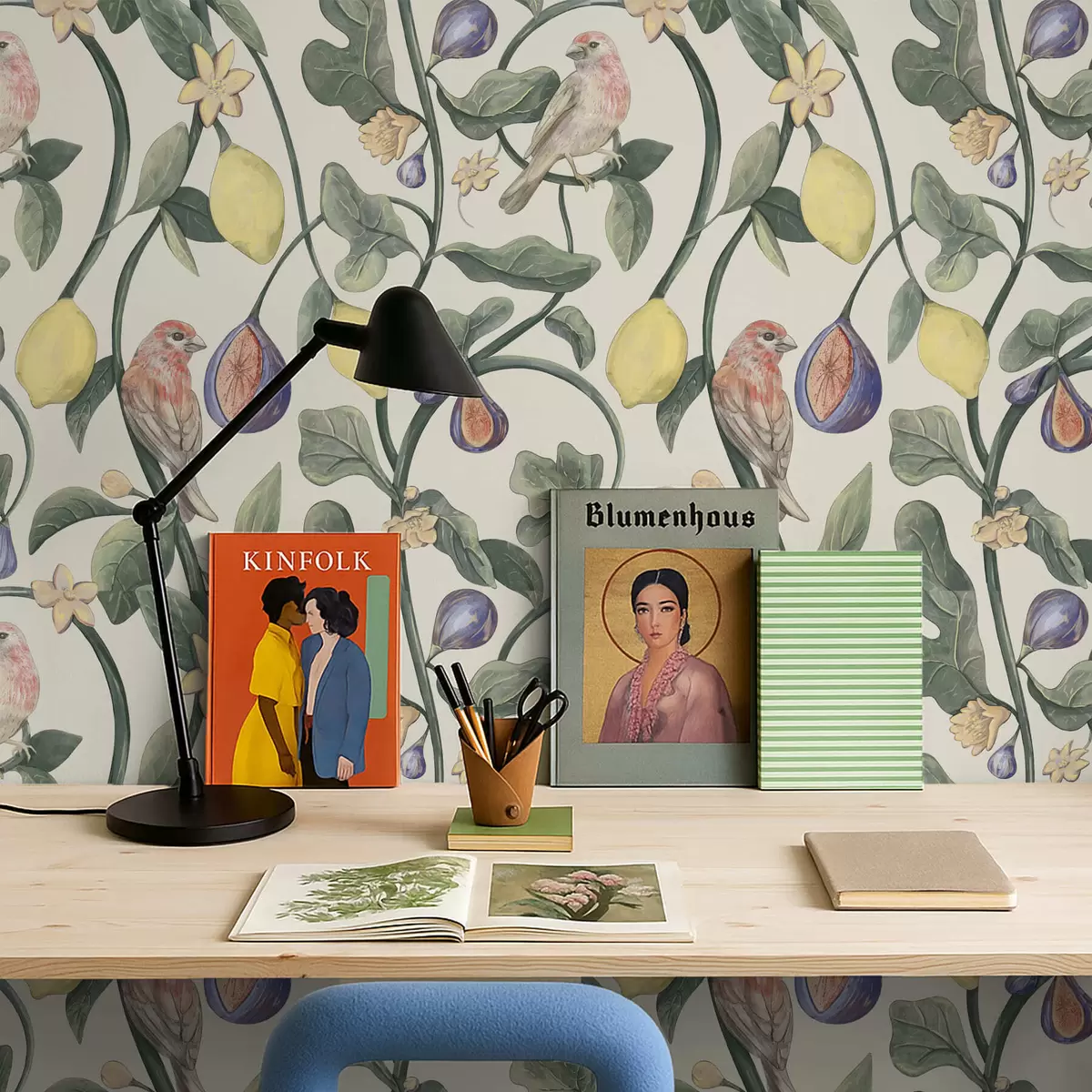 Papel de parede Pássaros entre folhas e frutos Nr. a01107